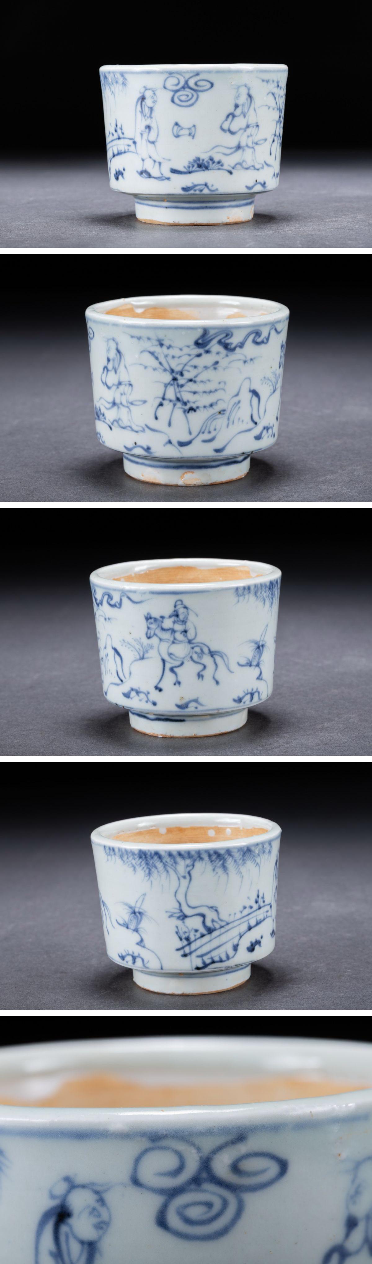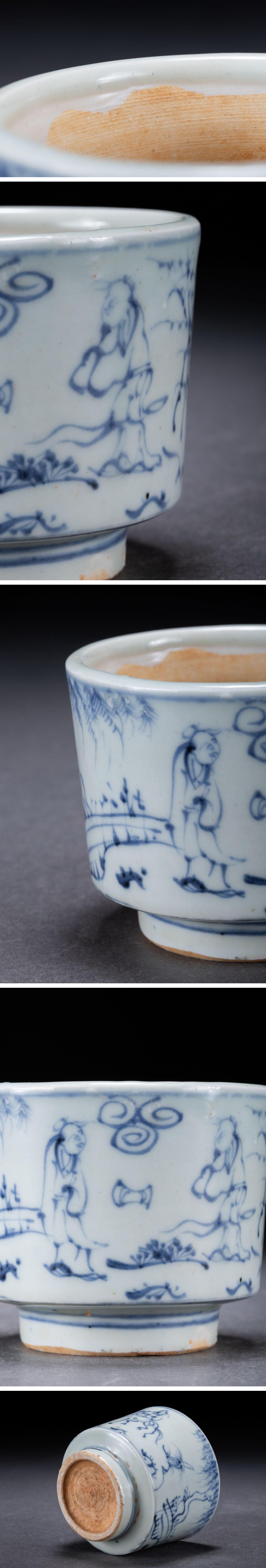 【華】時代舊藏 時代物 古瀬戸焼 染付き 人物故事茶碗 茶煎道具 時代物 古美術 骨董品A25070298-QR 收藏