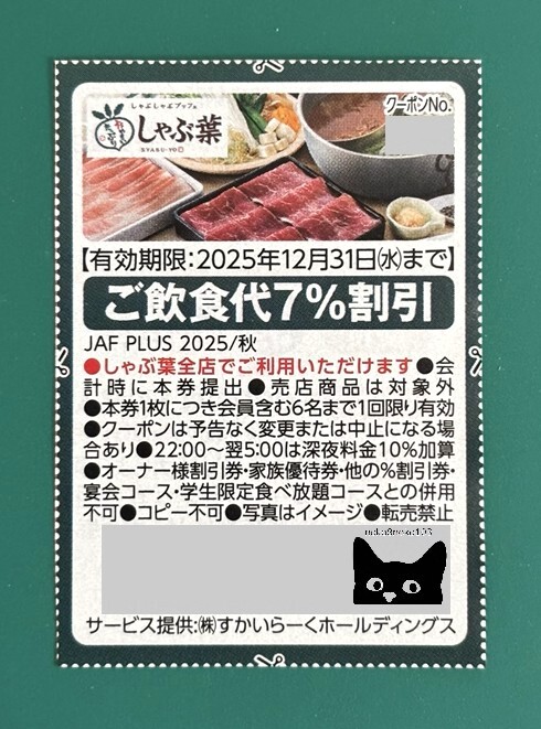 ☆【しゃぶ菜】★ご飲食代 7%割引★JAF クーポン 優待券 割引券 関東エリア 2025.12.31まで☆ 收藏