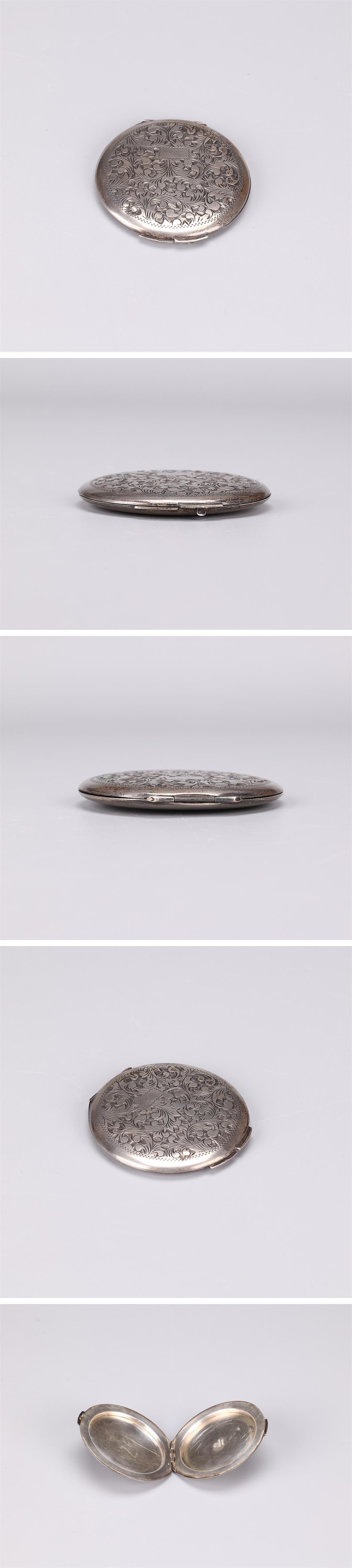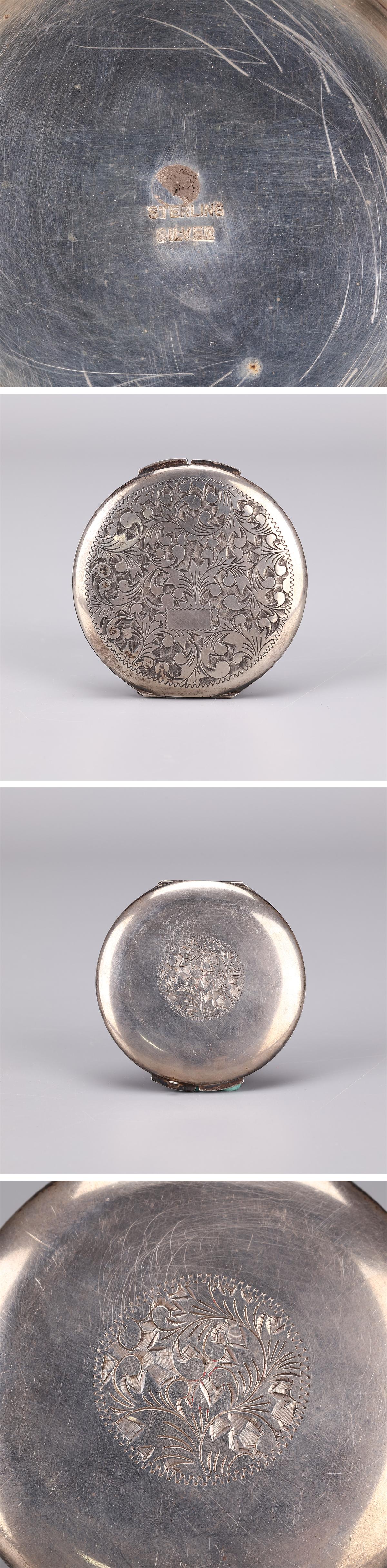 【吉】GB523 時代 【純銀製】 STERLING銘 唐草紋彫刻 パウダーケース 重47g/本物保証! 收藏