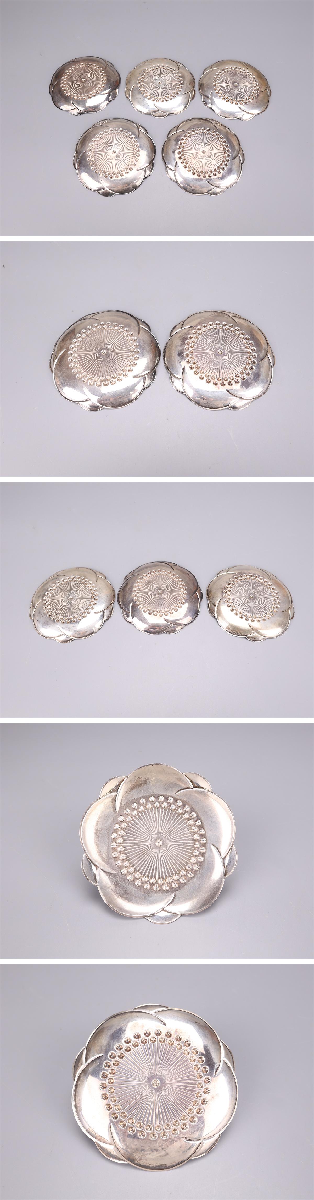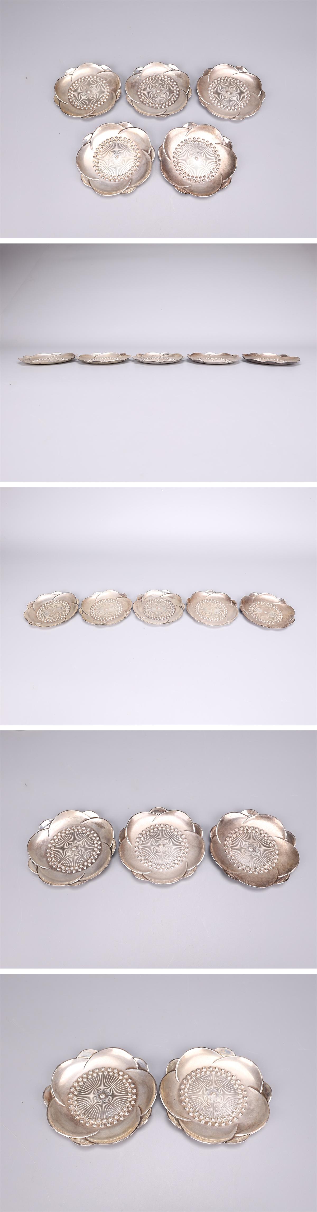 【吉】GB512 時代 【純銀製】 蓮花形 銘々皿 茶托 5客 重187g/共箱付 本物保証 美品Gg! 收藏