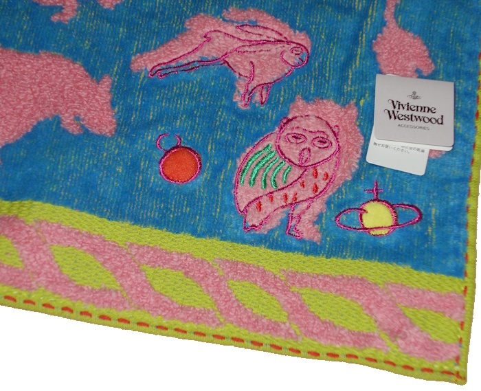 Vivienne Westwood ヴィヴィアン・ウエストウッド★タオルハンカチ★アニマル柄xオーブアップリケ★ブルーxピンク 收藏