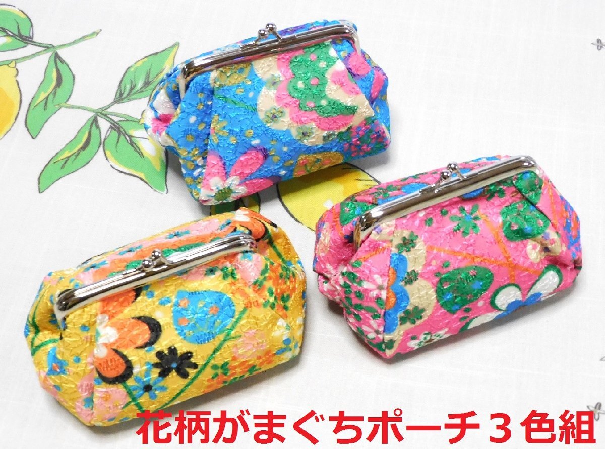 花柄がまぐちポーチ3色組 小物入れ 財布 化粧ポーチ がま口 マチ付き 收藏