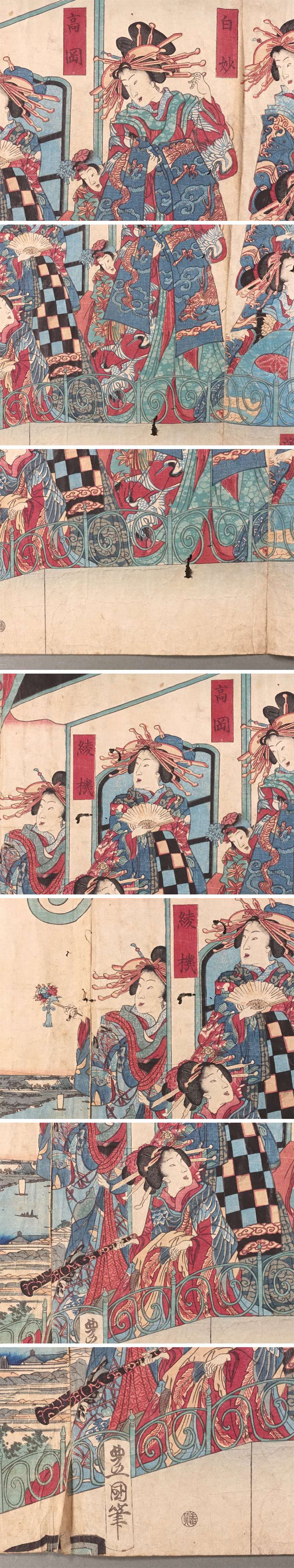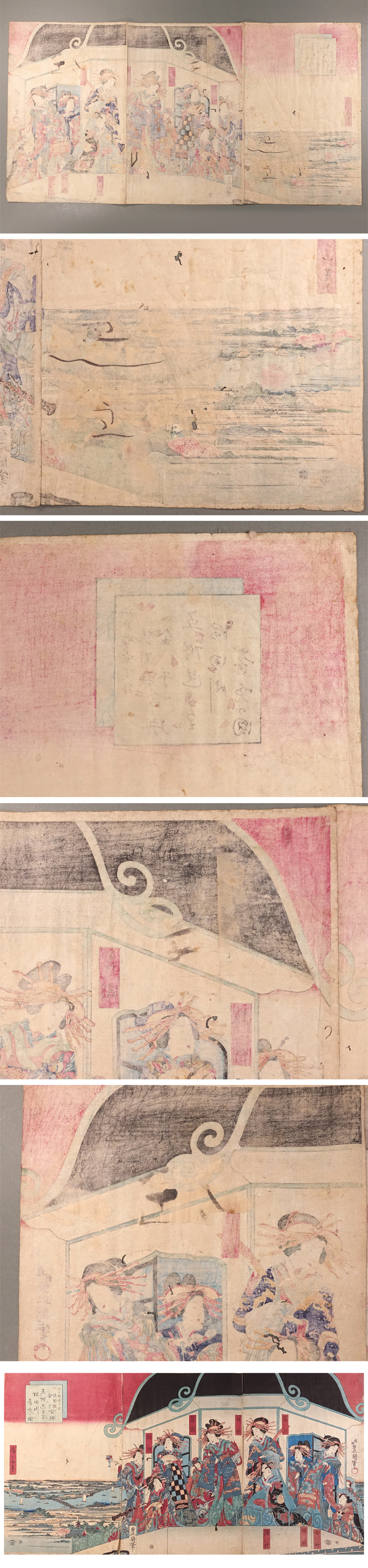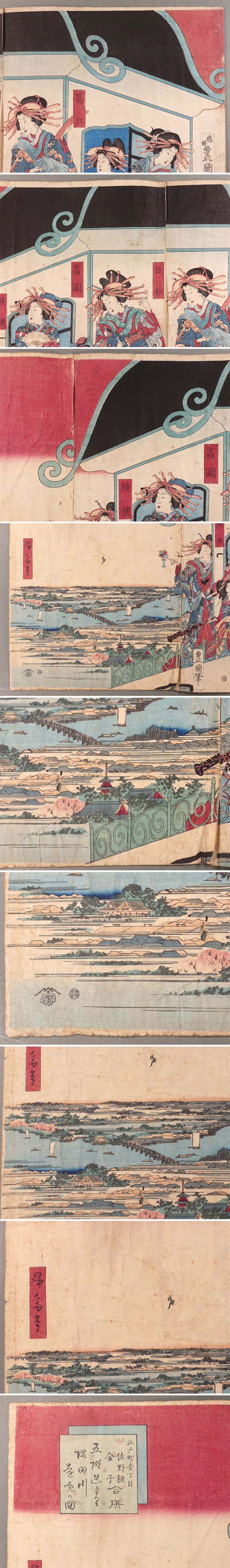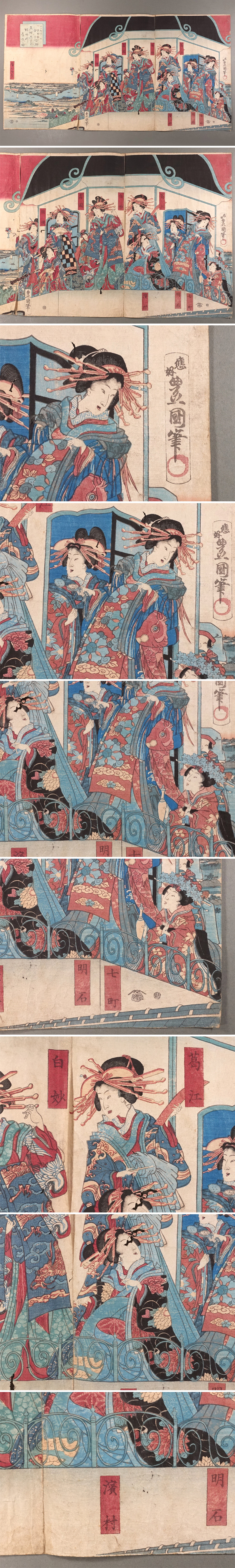 ∇花∇【二代歌川国貞(四代豊国)】作 明治5年当時摺 浮世絵木版画 大判錦絵三枚続「江戸町壱丁目 佐野槌金子合併 五階造与里隅田川春暁図」 收藏