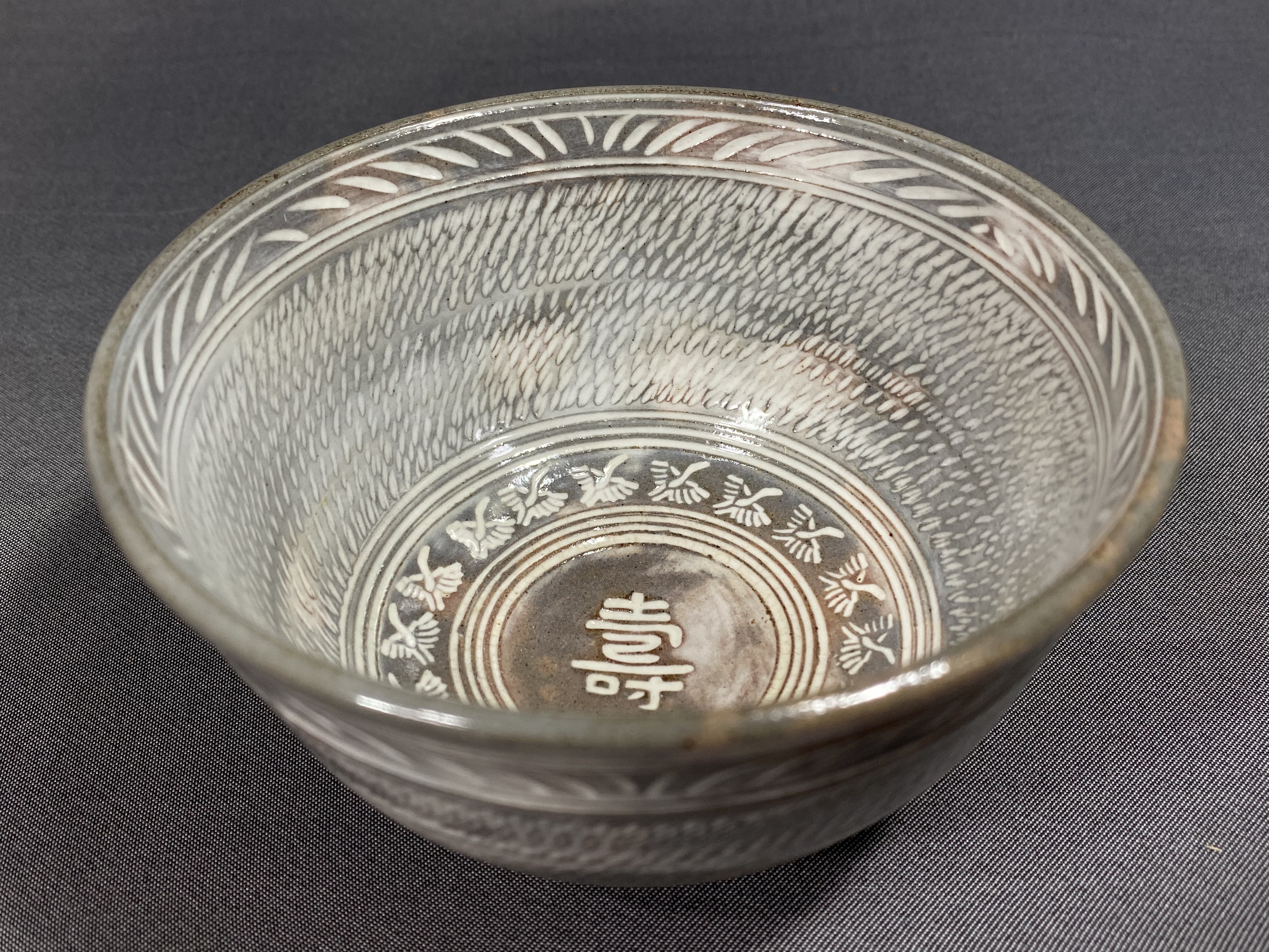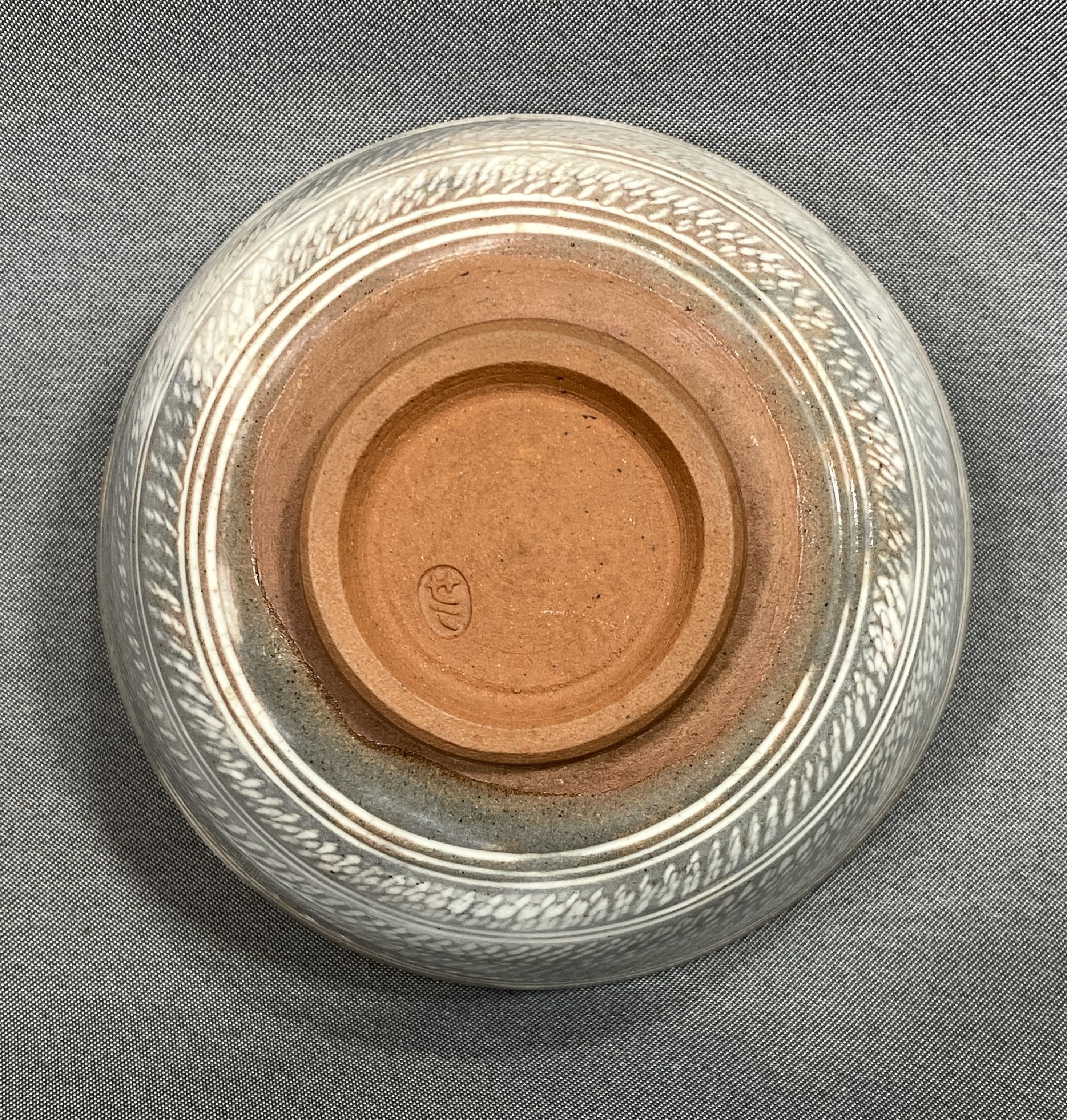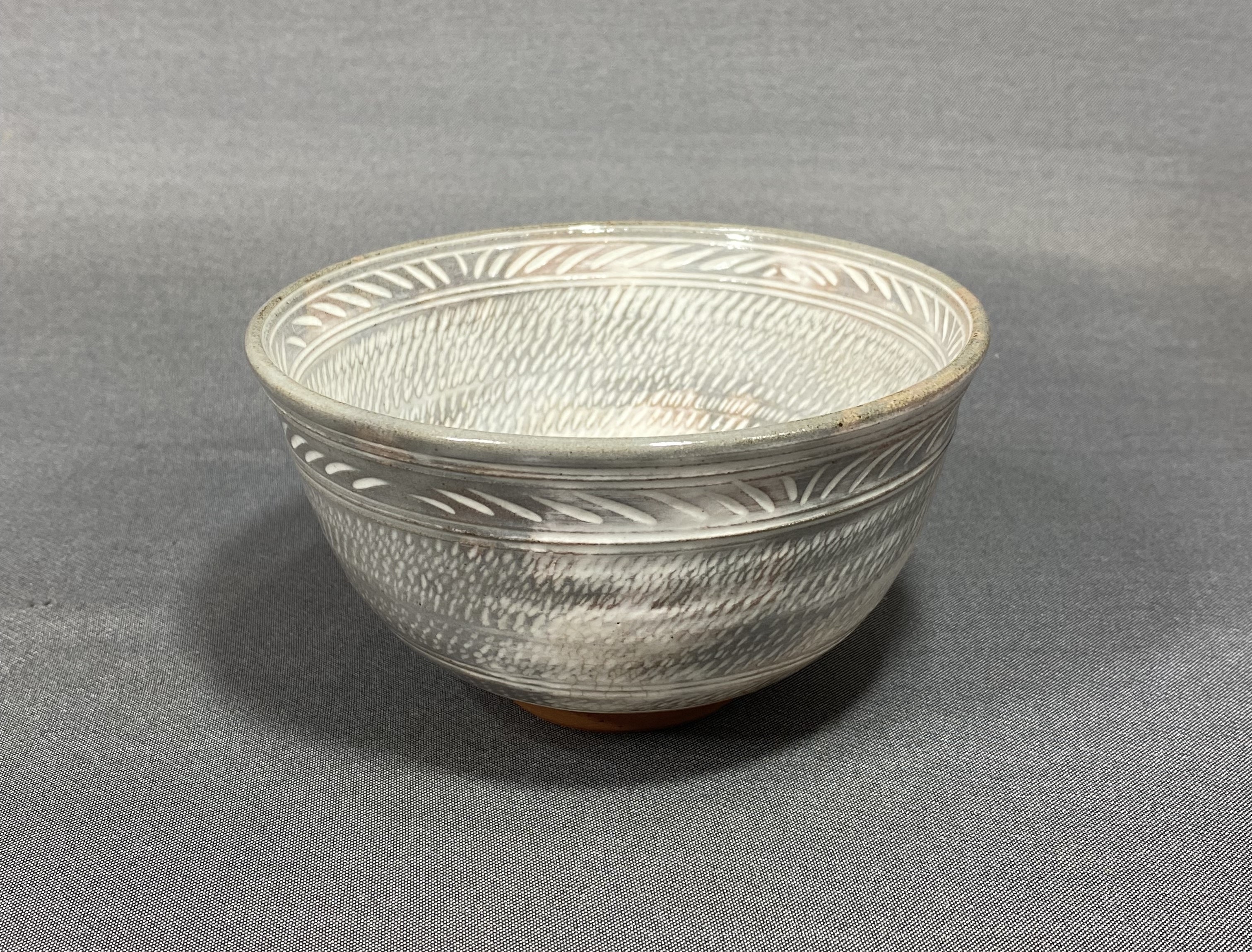 【風車】膳所焼 陽炎園 岩崎新定 造 三島写 茶碗▲共箱 共布 栞/陶歴▲遠州七窯 茶道具 未使用 煎茶道具 煎茶碗 收藏