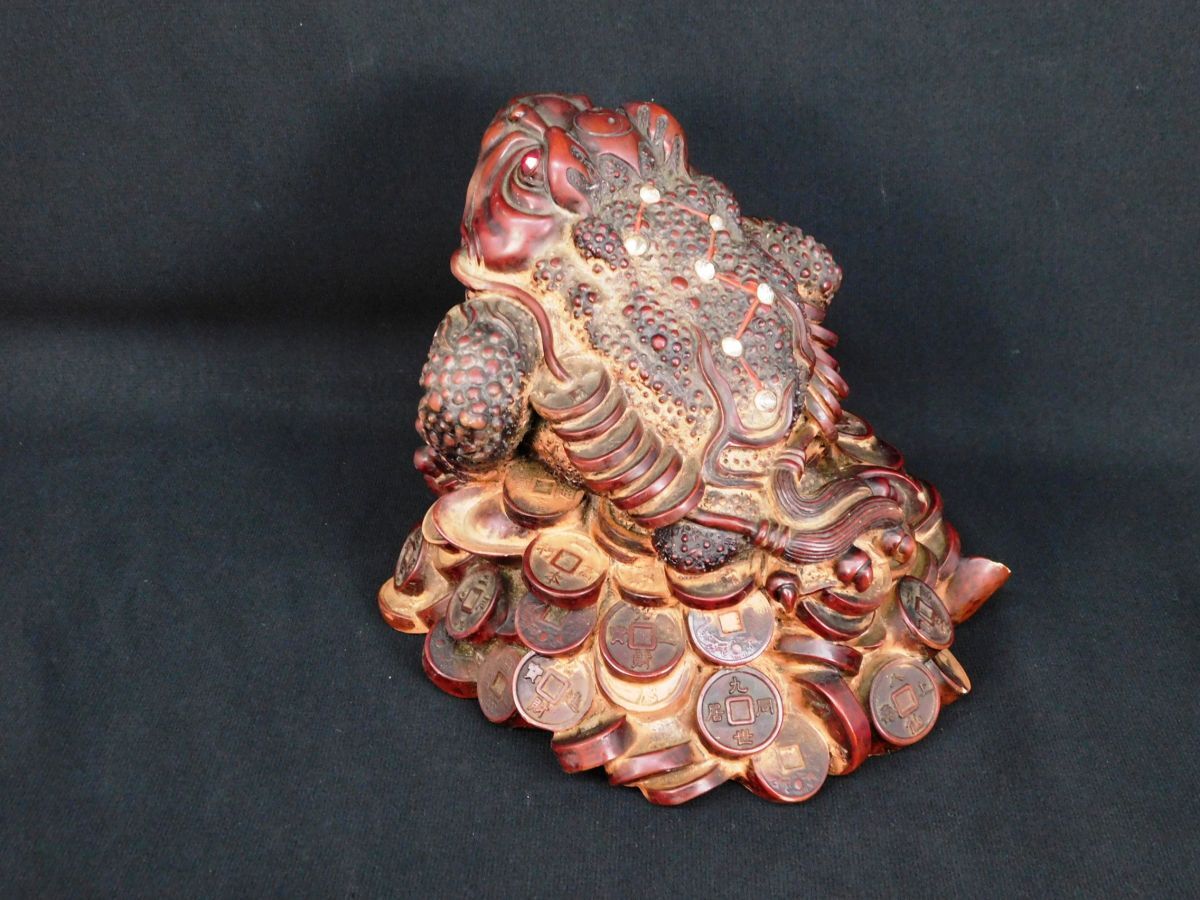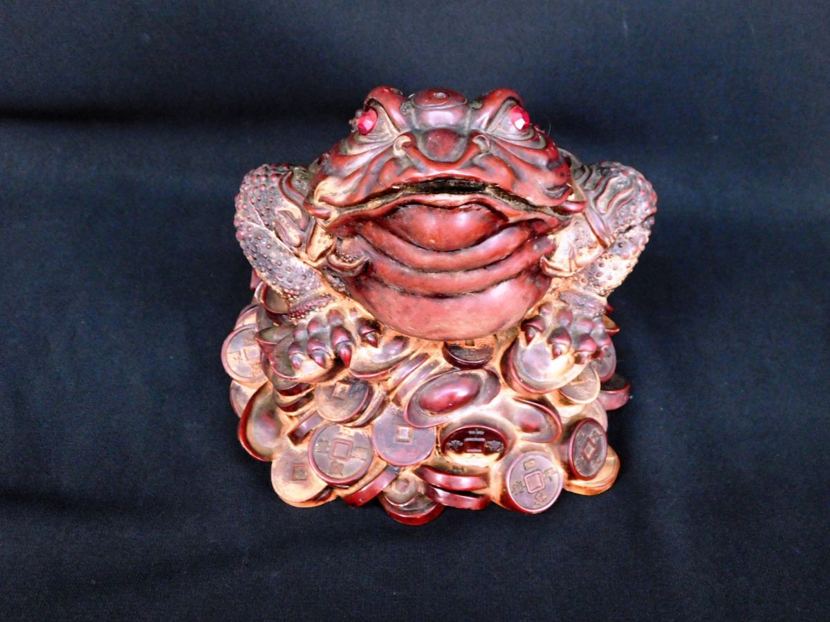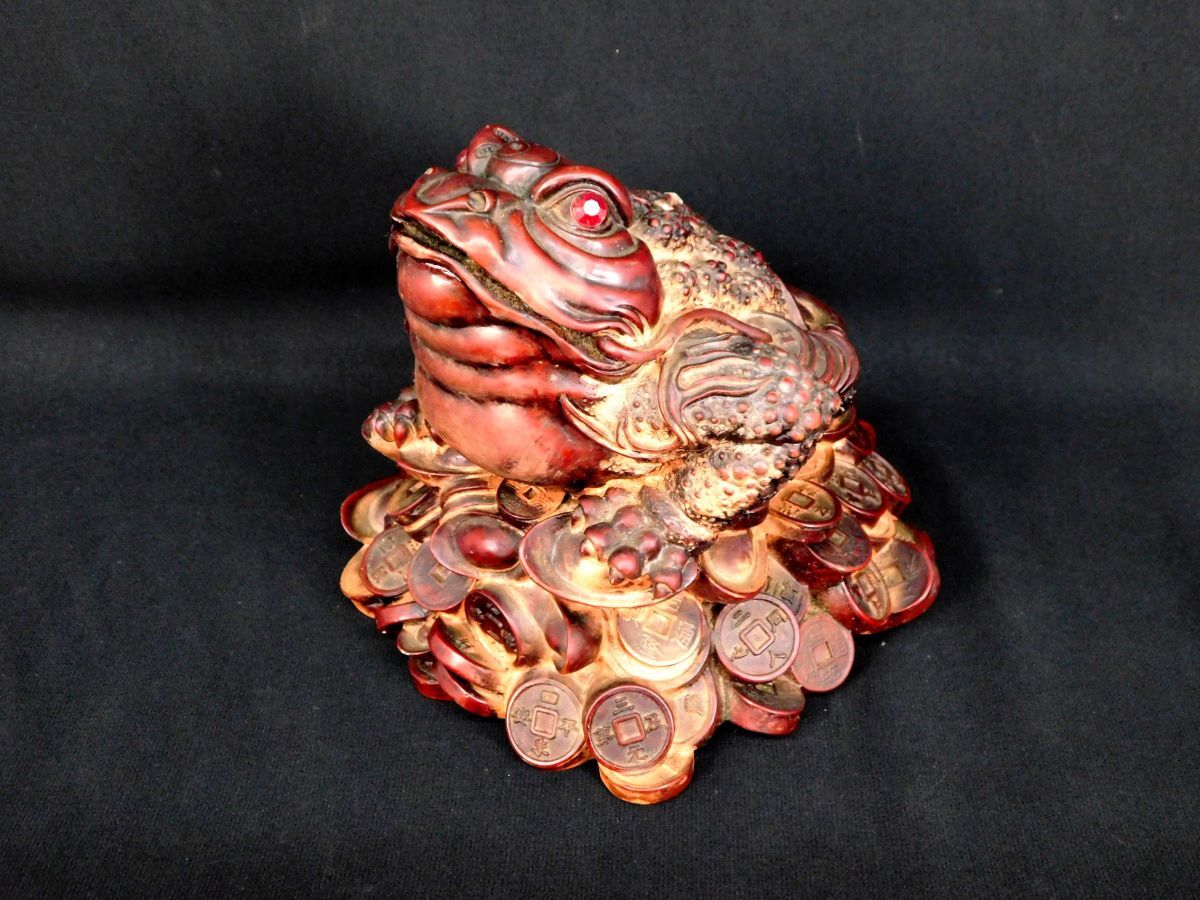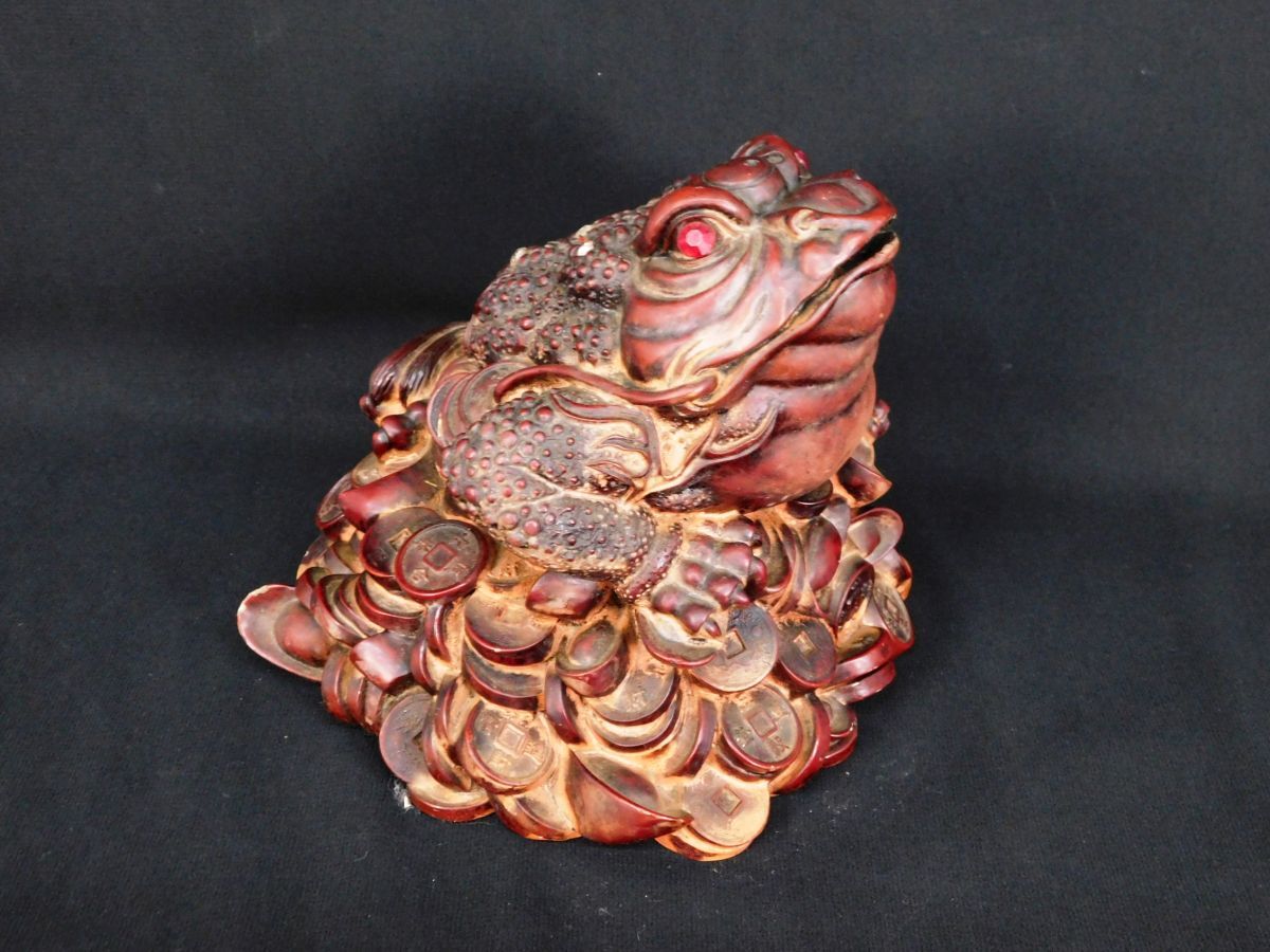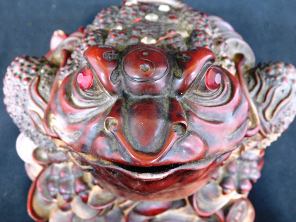 A801★銭蛙 カエル 三本足 赤目 置物 工芸品 風水 重量約3.86Kg 開運 オブジェ レトロ 財運 金運 縁起物 天然石?★送料880円〜 收藏