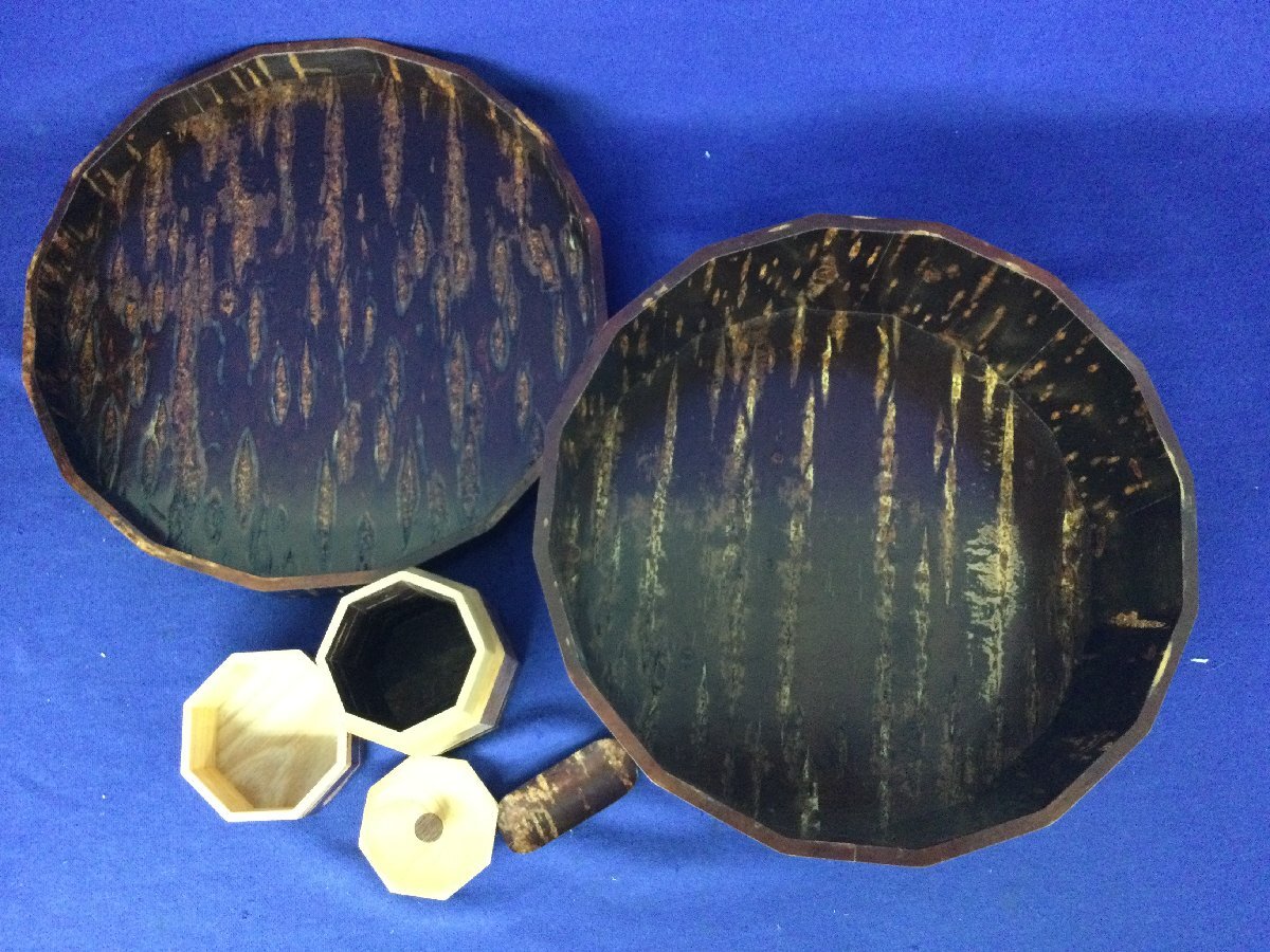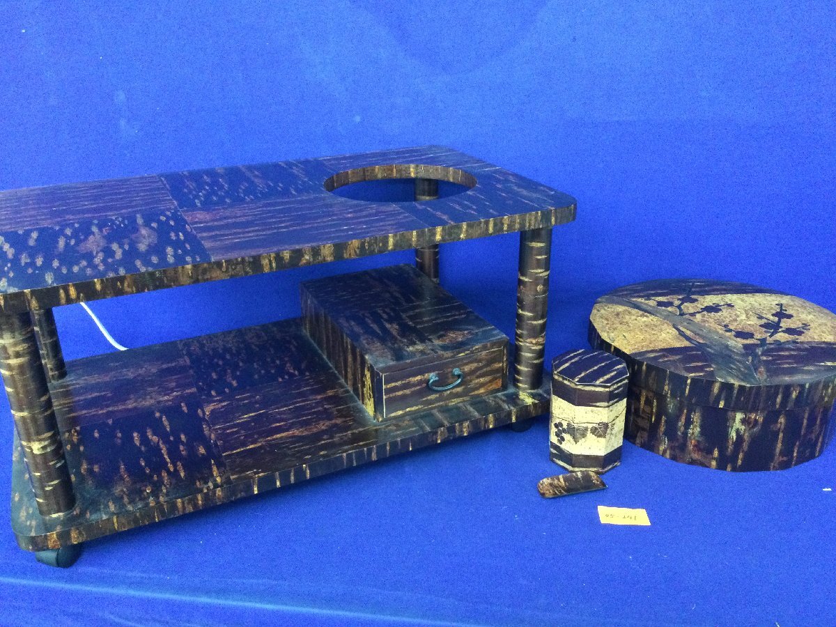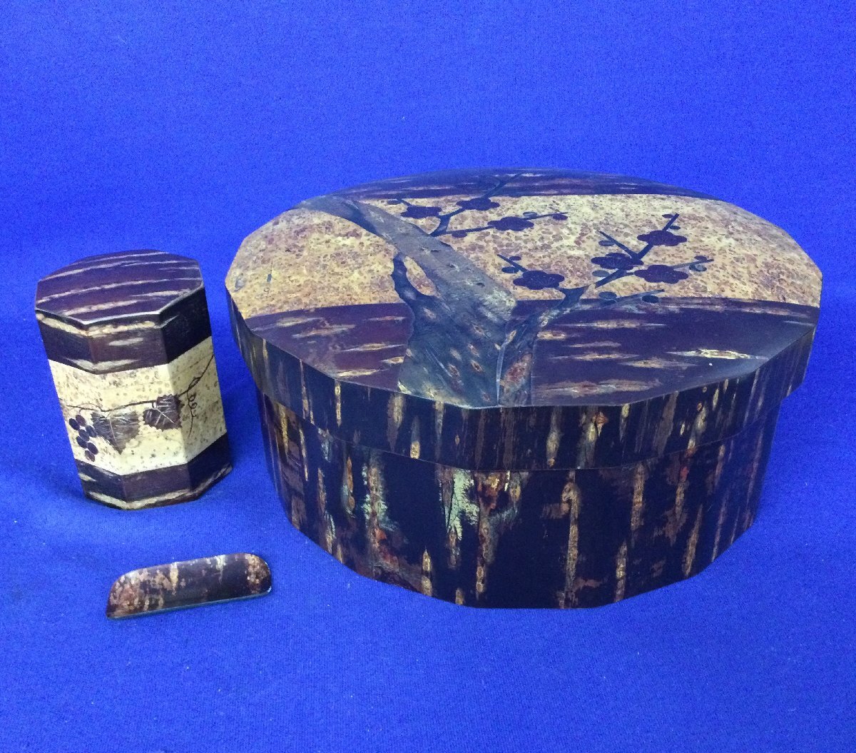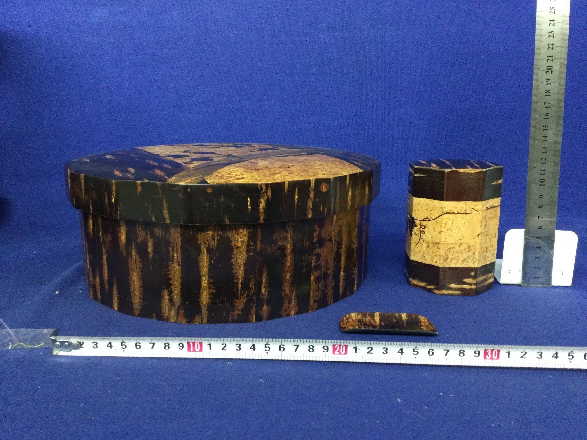 ★05―241★木製家具 樺細工 キャスター付き ポットワゴン 茶櫃 茶筒 茶匙 4点まとめて/桜皮細工 木工 伝統工芸品 茶道具 茶器[140] 收藏