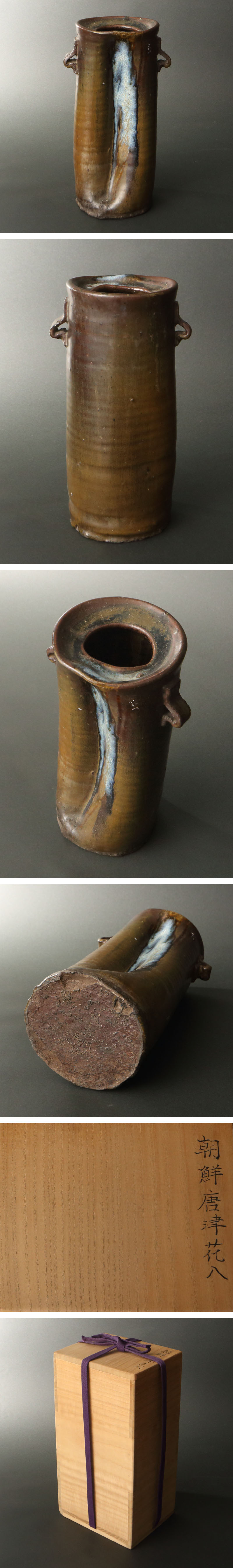 委託HK◇時代 朝鮮唐津花入(茶道具 陶磁器 陶芸 唐津焼 朝鮮唐津 花器 花瓶 花生 和 耳付 茶花 茶事 茶席 茶の湯 古美術 古物 骨董 ) 收藏