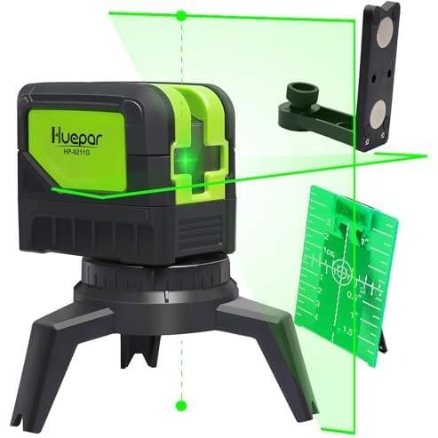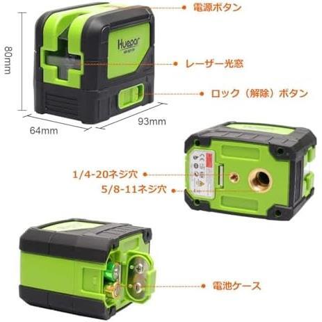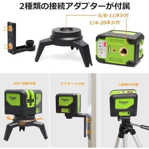 9211GA Huepar 2ライン グリーン レーザー墨出し器 2ポイント 緑色 クロスラインレーザー 自動水平調整機能 高輝度 ライン出射角110°&180 收藏