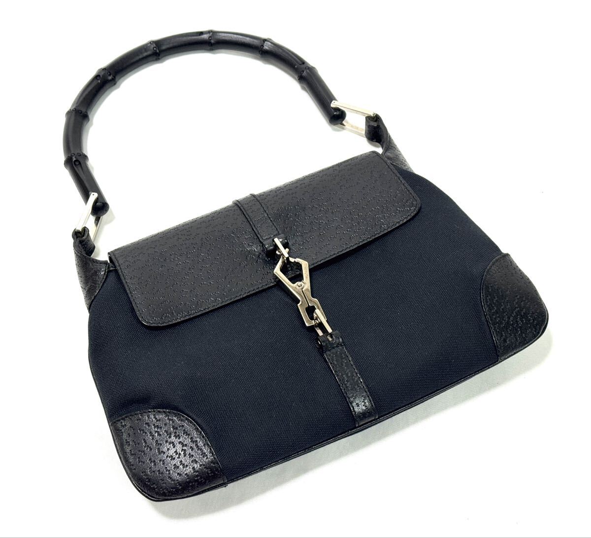 Ш  GUCCI グッチ ジャッキー バンブー ショルダーバッグ  キャンバス レザー ブラック シルバー金具 / 1028-6 / 297276