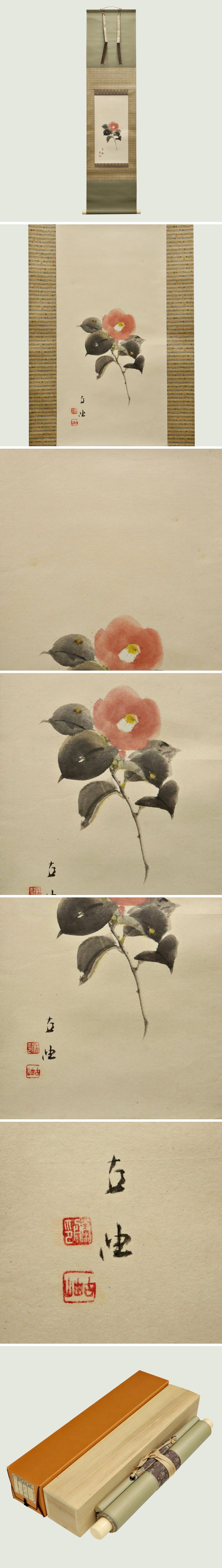 真作保証 佐藤古岫 椿図 紙本 箱 備後 掛軸 書画 骨董品 古美術品 1442sbzN 收藏