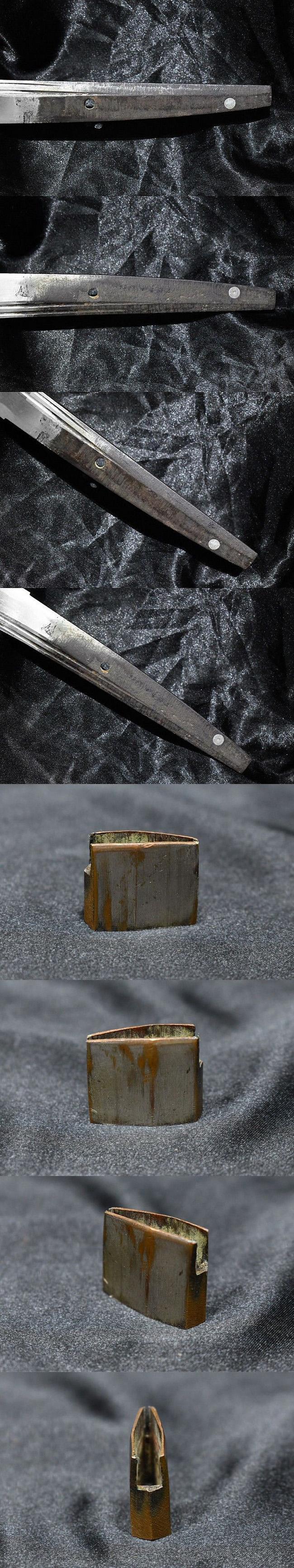 表【-】 裏【-】 種別:刀 サイズ:長さ60.8cm 反り: 2.2cm 目くぎ穴 1個 元幅:約 2.949cm 元重:約 0.665cm 先幅:約 1.763cm 先重:約 0.476cm 刀身重量:約 570g(ハバキ・柄をとった状態) ハバキ重量:約 23.8g 鞘全長:約 97.5cm |