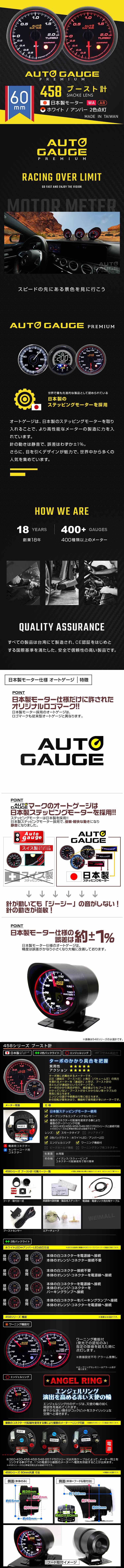 ブースト計 新オートゲージ プレミアム 60mm 日本製モーター 追加メーター Aリンク ワーニング 静音 2色 ホワイト/アンバー 458シリーズ 收藏