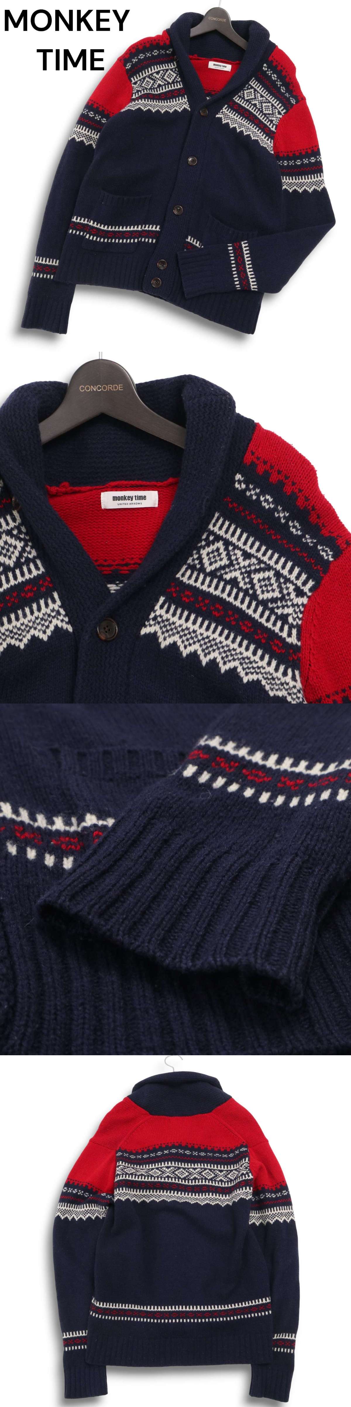MONKEY TIME モンキータイム ユナイテッドアローズ ウール100%★ ショールカラー ニット カーディガン Sz.L メンズ 收藏