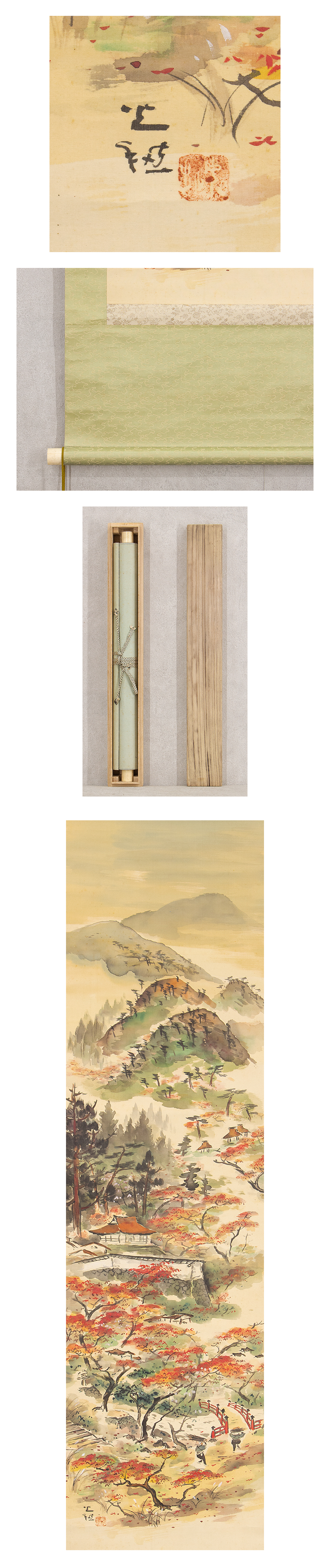 【真作】佐野光穂 秋山水風景 掛軸 合せ箱 富田渓仙に師事 收藏
