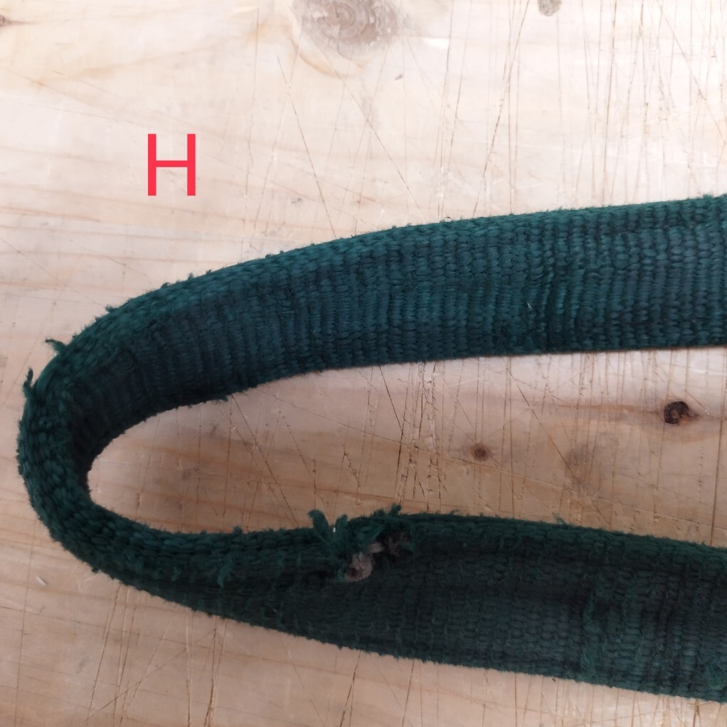 中古品につき、耐荷重など詳細は不明ですが、チェーンブロックを使って、約1.5tの単体鋼材(鉄塊状の物)を荷締めしていたベルトです。耐荷重の目安にして下さい。