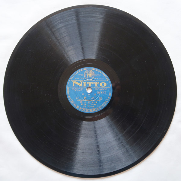 「SP盤『流浪の唄/旅の愁ひ 東海林太郎』」です。盤の状態は経年の小スレ、小傷等見られますが特に気になる程ではないと思います。SP盤は以前にコレクターの方から出来れば視聴はしないでほしいと頼まれた事がありそれ以降は特に気になった部分以外は視聴しておりませんのでご了承お願いいたします。