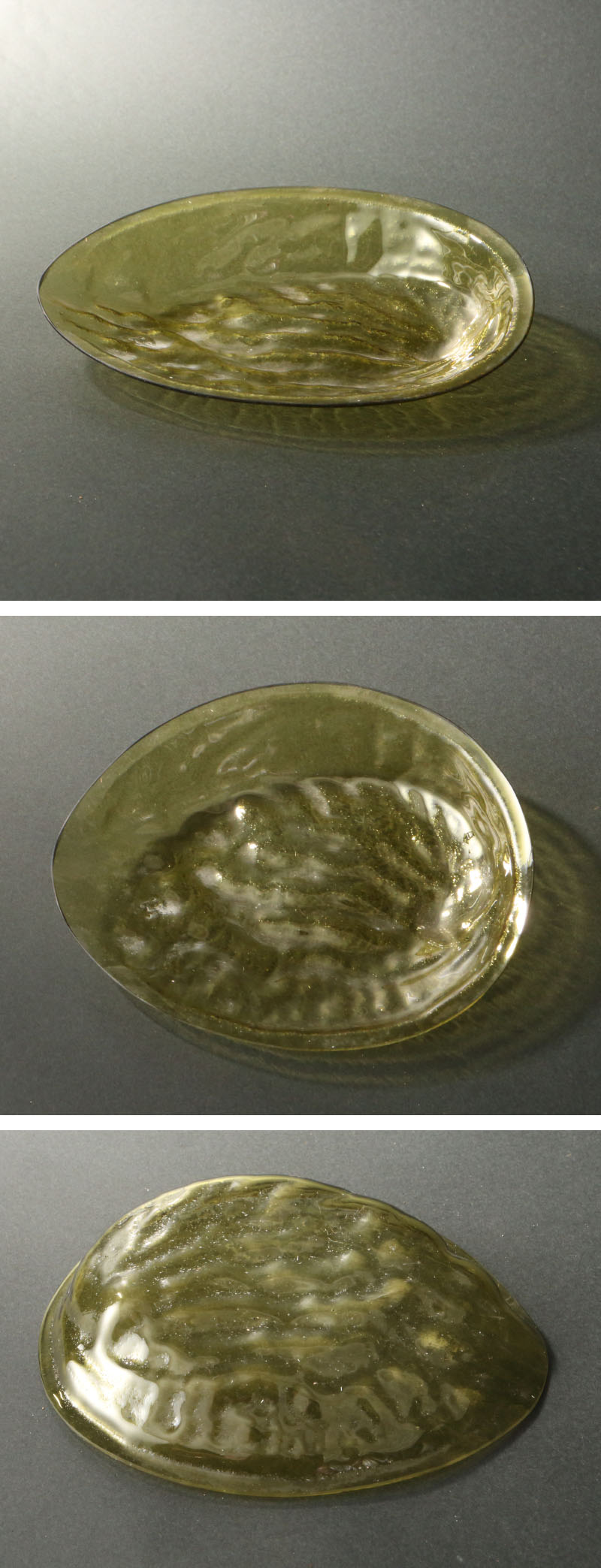 【深和】江戸中期◆型吹き黄色ガラス鮑皿(変型皿 茶道具 和食器 日本料理 義山 ぎやまん ビードロ 和ガラス 気泡ガラス) 收藏
