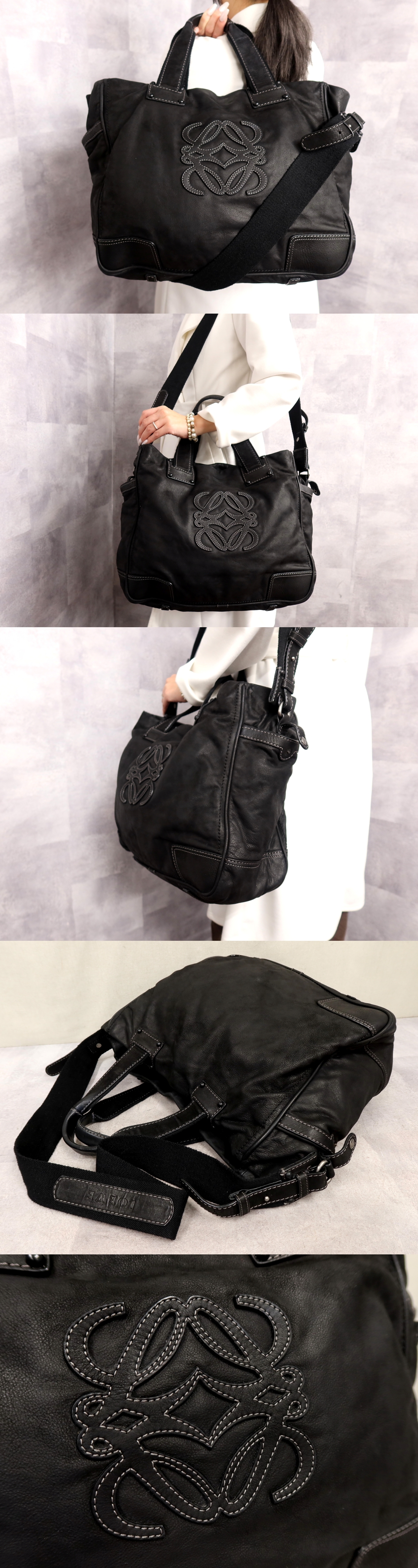 ●超美品●LOEWE ロエベ●メンズ●ボルソ●アナグラム●ヌバック レザー 本革●2way ハンド トート バッグ●黒●A4 収納 かばん●Js62766 收藏