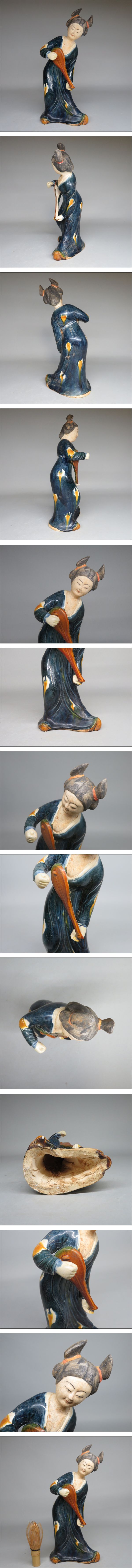 | 「都内コレクター所蔵品」時代物 唐三彩 楽俑 美人俑 置物 高さ29㎝ /骨董品 時代品 美術品 古美術品 中国古玩 | ||