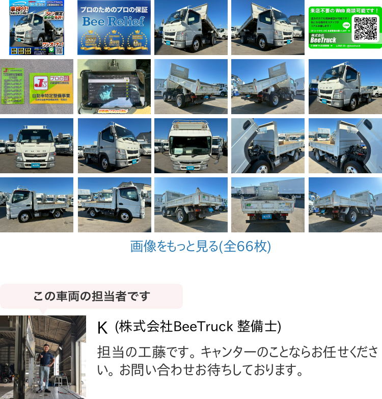 【諸費用コミ】:保証対象車両 車検付 令和8年5月迄 H27 三菱ふそう キャンター ダンプ ワンオーナー 4ナンバー 2t積載 收藏