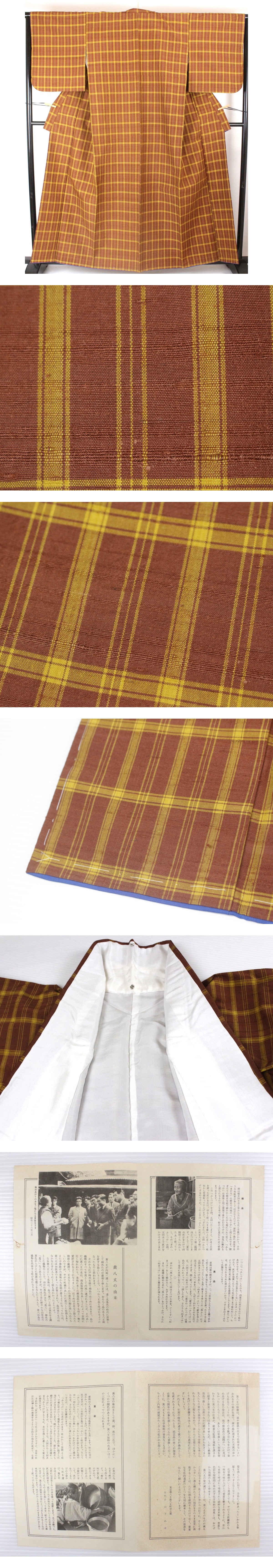 ■未着用■特選【本場黄八丈 】格子文様『山下めゆ冊子あり』《検査合格品》 裄:64cm e-2828 收藏