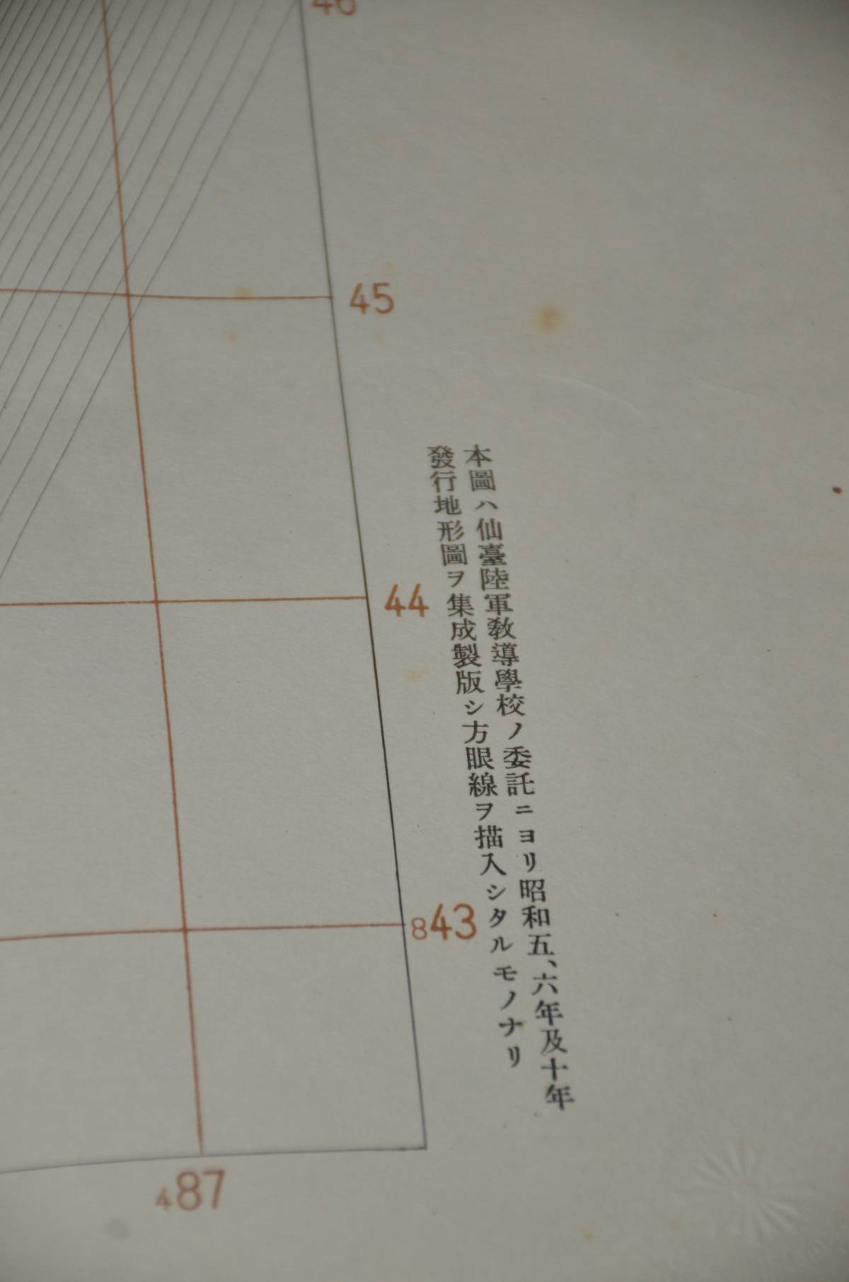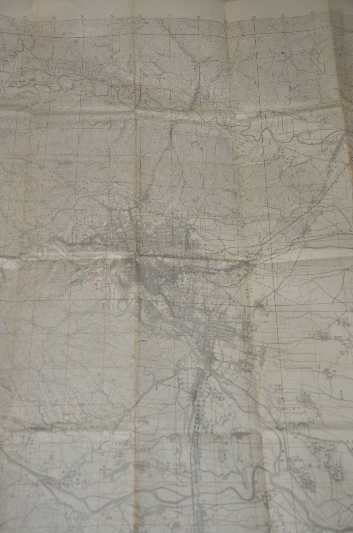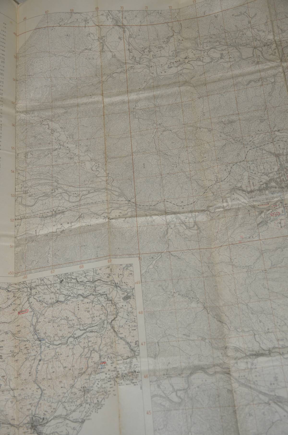 仙台陸軍教導学校作成の地図は、陸軍軍用で、升目が描かれています。この升線を使って、現在位置を報告に使用し、攻撃目標を指示することに使われます。昭和11年印刷の物で、サイズは78センチ×105センチです。もう一点は、宮城県の王城寺原演習場は、現在の自衛隊に引き継がれ、対戦車ヘリコプター、迫撃砲、榴弾砲、戦車の演習が出来る東北地方最大の演習場になっています。サイズは、39センチ×54センチです。本文下の追加写真もご覧ください。ヤマト運輸ネコポス便で、全国一律210円でお送りさせていただきます。