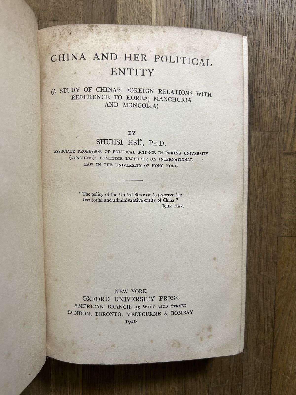 1926年 中国とその政治的統一体 Shushi Hs, China and Her Political Entity 英文洋書古書 收藏