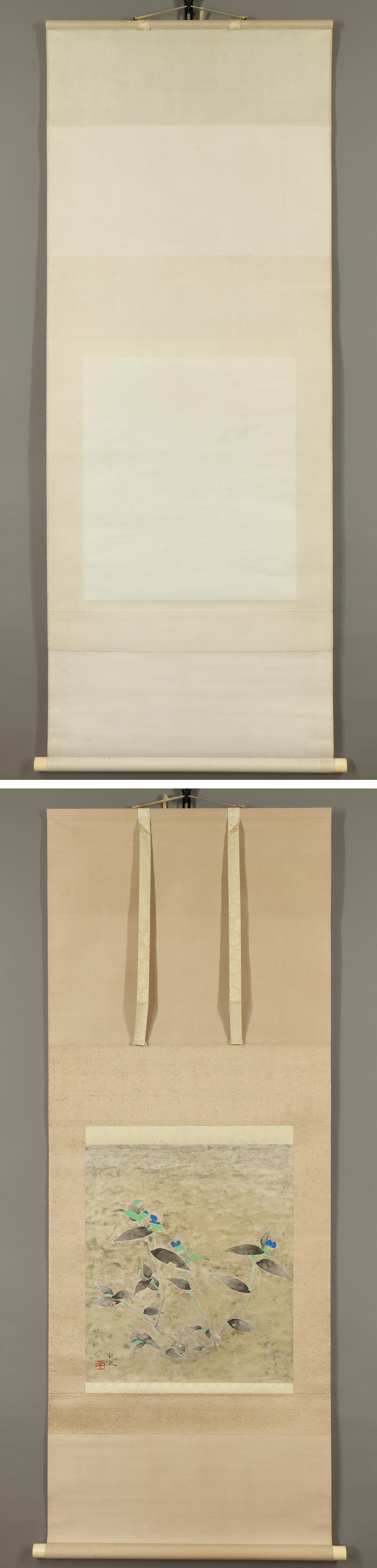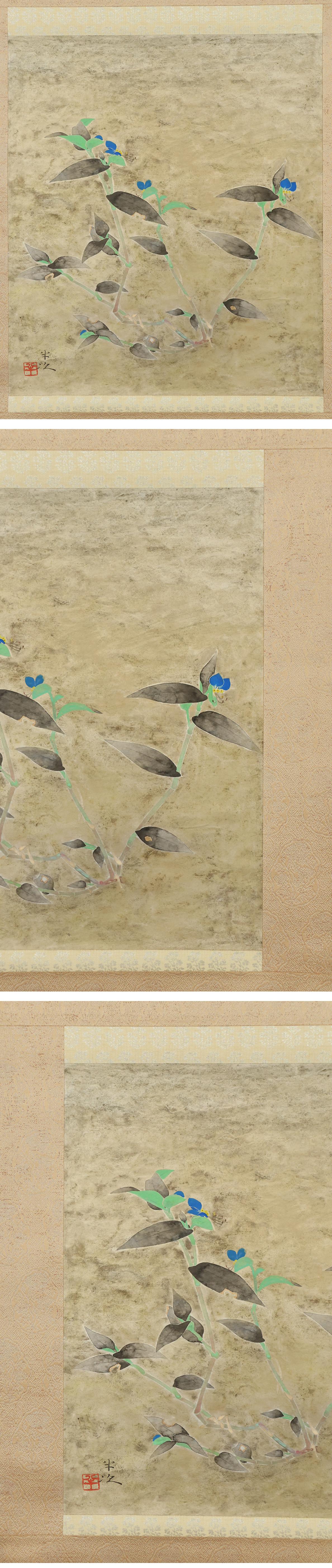 【真作】豊秋半二(豊秋半次)◆露草◆共箱◆二重箱◆富山県朝日町◆肉筆◆紙本◆掛軸◆x237 收藏