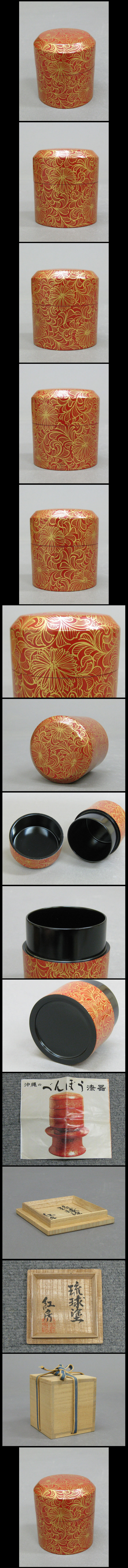 【心庵】沖縄 琉球塗 べんぼう 紅房 蒔絵 花文/中次 棗 茶入 共箱 栞 茶道具 B976 收藏