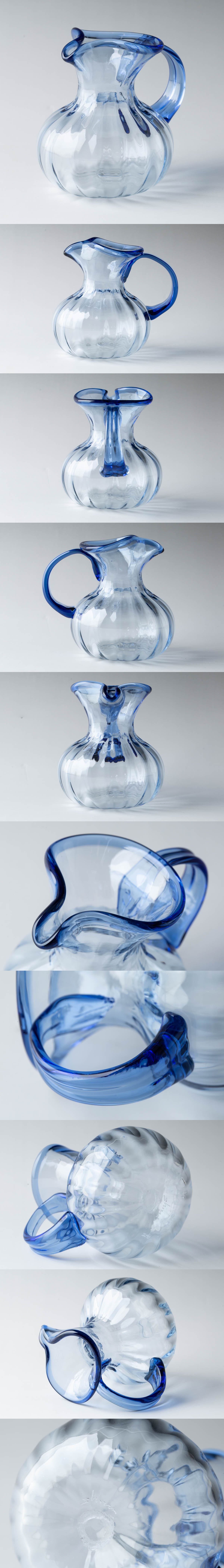 Shizu 船木倭帆 ピッチャー 吹きガラス ガラス細工 硝子工芸 ブルー #39351 收藏