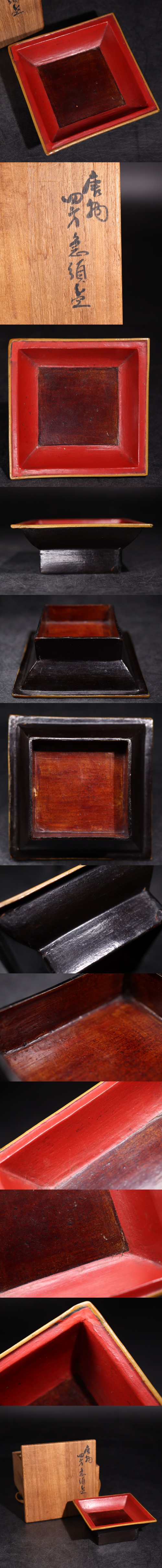 | 「 唐物 四方 急須盆 」 木箱付 / 漆芸 漆器 盆 煎茶道具 煎茶飾 検索: 根来塗 輪島塗 中国 .G3316 |