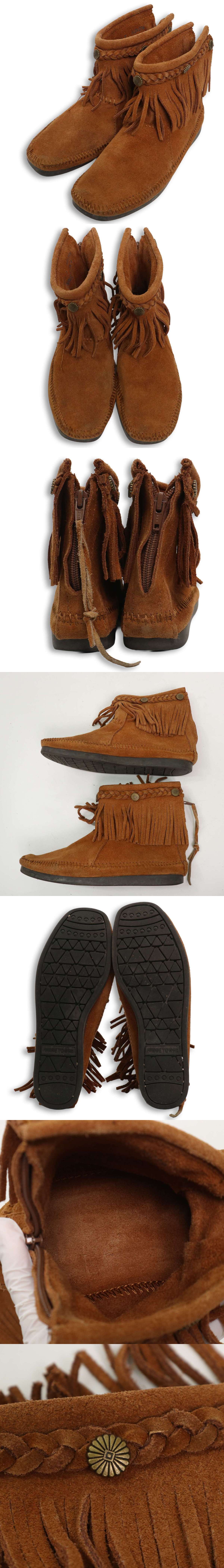 Minnetonka ミネトンカ 秋冬 スウェード★ モカシン フリンジ ブーツ スウェード シューズ ブーツ Sz.7 レディース 收藏