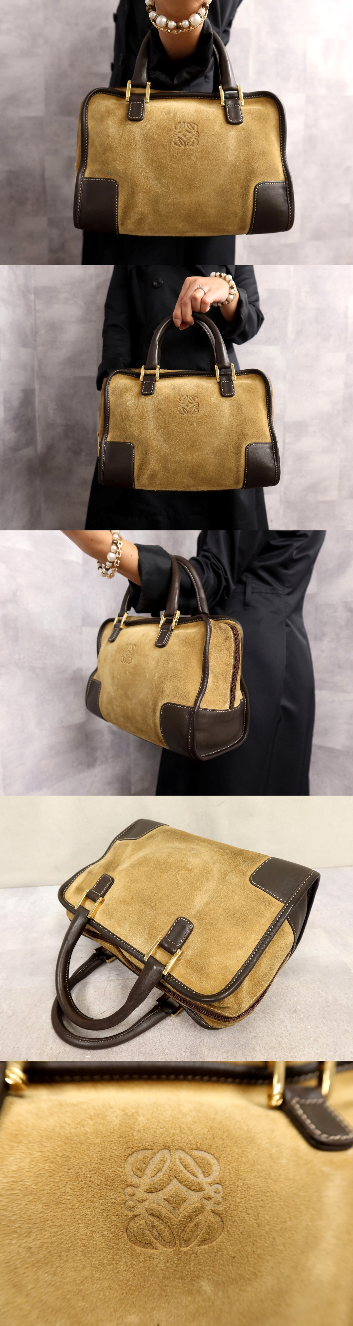 ●美品●LOEWE ロエベ●アナグラム●アマソナ28●スエード カーフ レザー 本革●ハンド バッグ●ベージュ ブラウン●ゴールド金具●Js63385 收藏