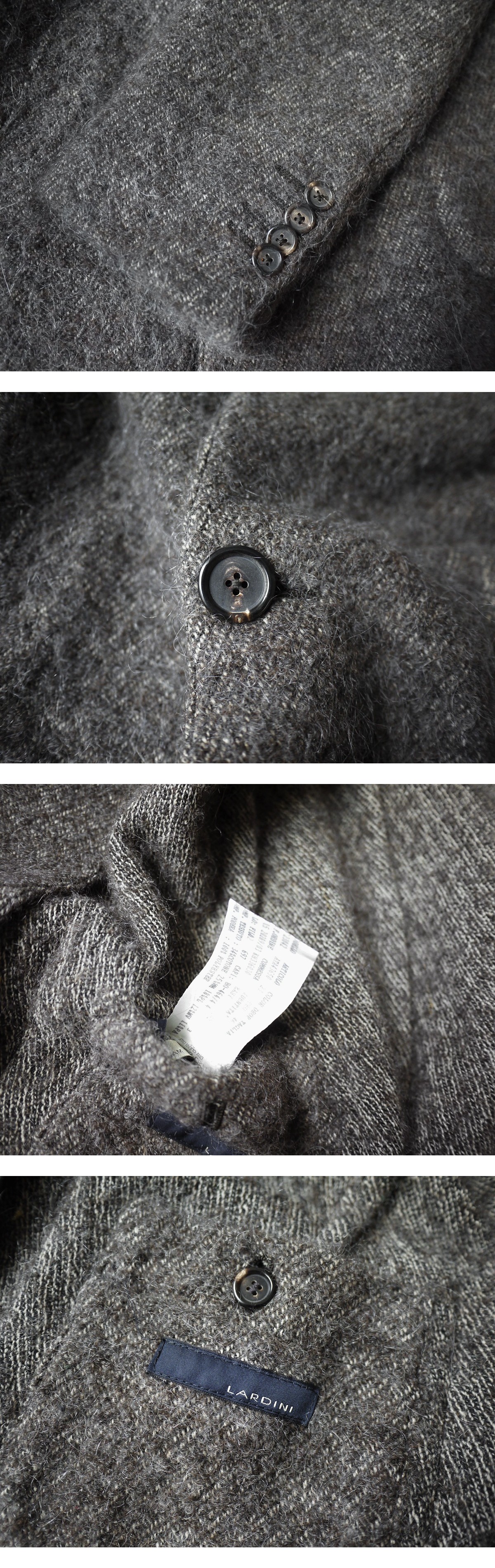 brand LARDINI made in Italy price \175,000(参考上代) Material mohair 34% polyester 25% wool 12% nylon 11% color Brown size 46 肩幅45 袖丈65 着丈95 身幅51(多少の誤差はご了承ください) 状態 使用感のあまり感じられない美品となります。裏地含めダメージは見受けられず末永くご使用頂ける状態です。 |