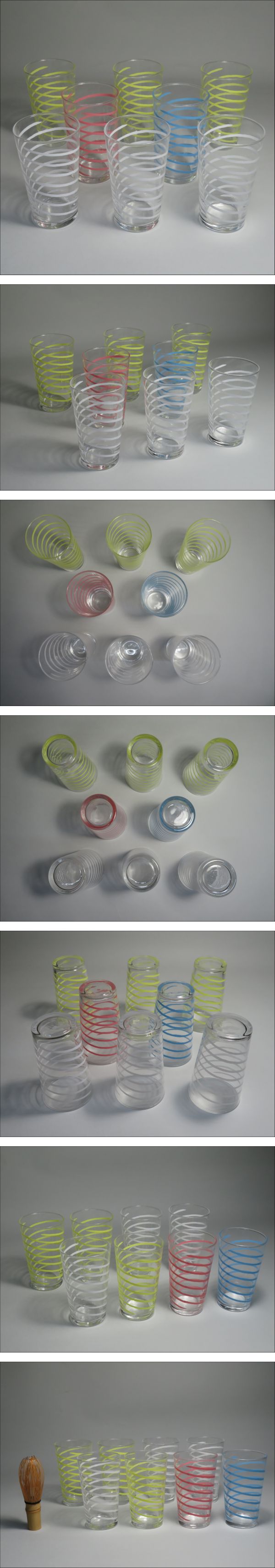 | 1円スタート~明治期~昭和レトロ ハイボール タンブラー ガラス 4色 螺旋紋コップ 8客 /昭和レトロ 明治 大正時代 | ||