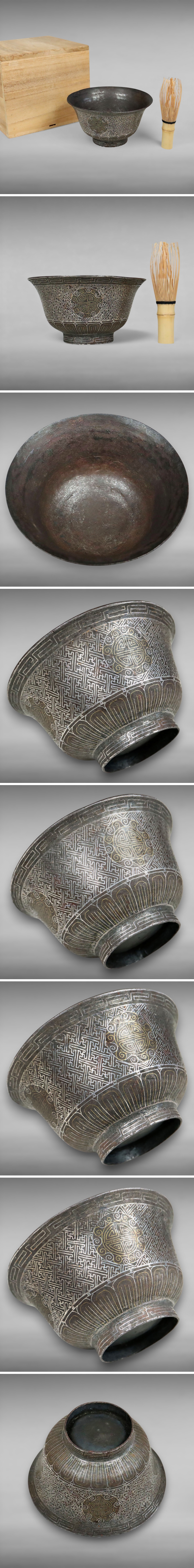 李朝期 古鉄 茶碗 金銀象嵌 箱 朝鮮美術 茶道具 煎茶道具 古美術 骨董品 建水 盃 9820vbxN 收藏
