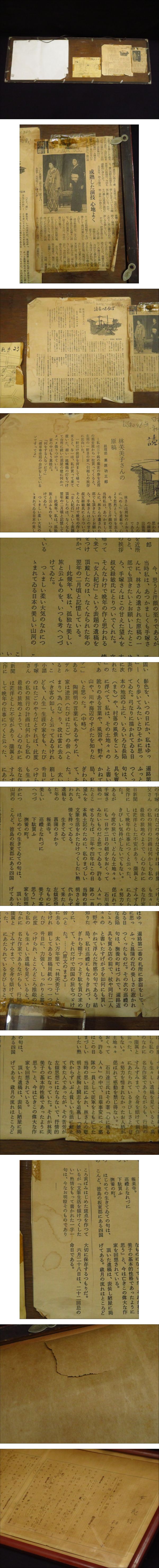 貴重!林芙美子 直筆 草稿【女人紀行 3枚◆私は孤独な美しい旅を】専用原稿用紙 入手経緯が裏面に記載◆額装 自筆 肉筆 真筆◆放浪記の作者 收藏