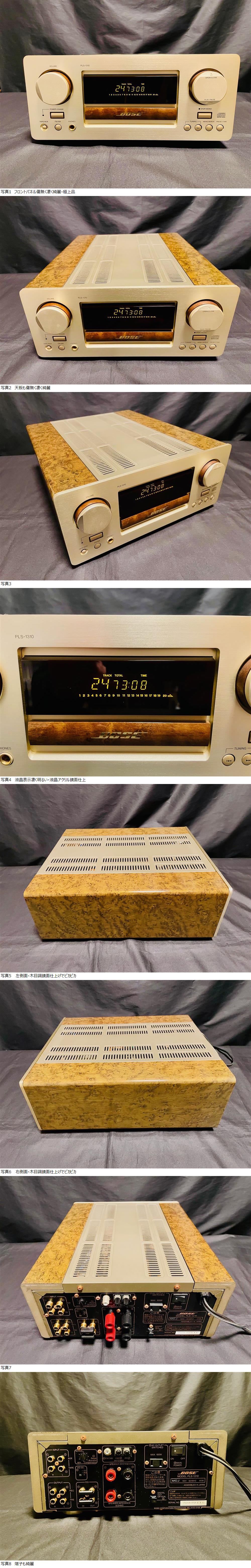 内部は拘って製造され、使用ネジは全て銅ネジ、基盤支えには真鍮、本体シャシーには銅板、フロントパネルには5mm圧のアルミパネルが使用されています。今後BOSE社からいろんな機種が発売されると思いますが現在はコンパクト化され、こちらの機種ような素晴らしい製品は発売される事は無いと思われます。