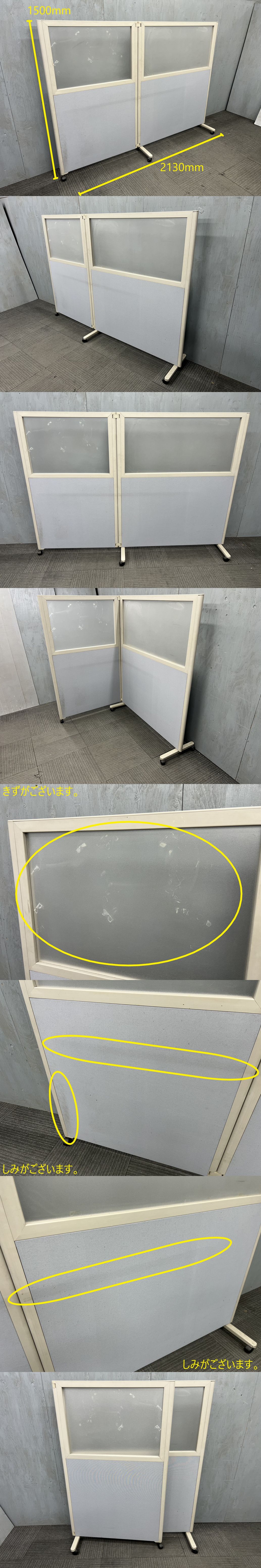 ◆管1282◆自社便対応地域あり◆コクヨ製◆2連間仕切りパーティションキャスター付き◆L字ストレート◆高1500mm最大幅2130mmパーテーション 收藏