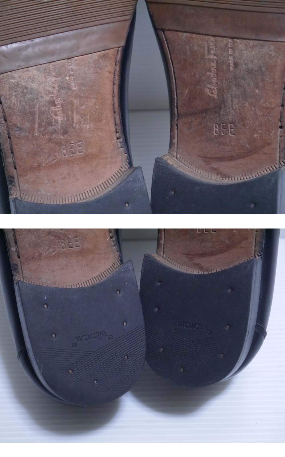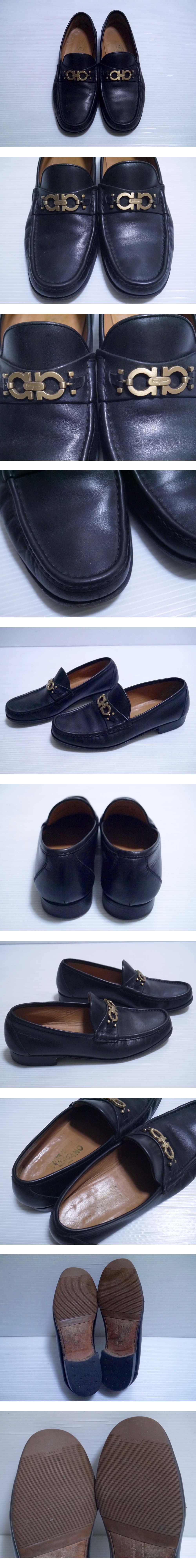 16.Salvatore Ferragamo フェラガモ ローファー メンズ 8EE 革靴 黒 ブラック ジャンク 收藏