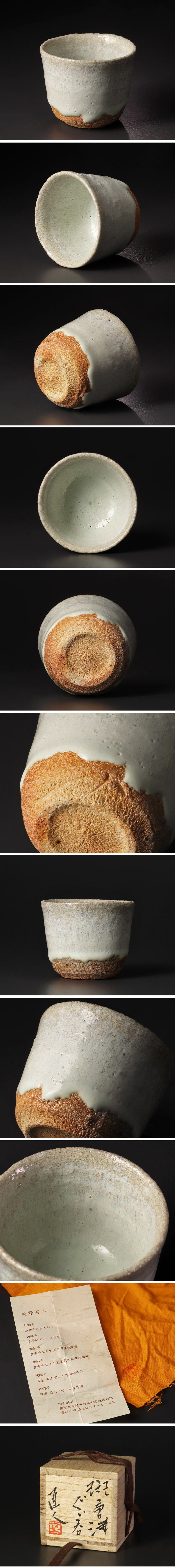 古唐津の源流を辿りながら、唐津の土や砂岩を自ら採取し、薪窯で焼き上げている作家の作品です。砂岩の産地ごとに異なる粒子や質を見極め、その特性を活かしながら黒唐津・朝鮮唐津・斑唐津・絵唐津など幅広く制作を続けています。素朴な土の温かみがしっとりと手に伝わり、静かな余韻を残す味わい深いぐい呑みです。 ★商品は矢野直人の作品である事を保証致します。 |