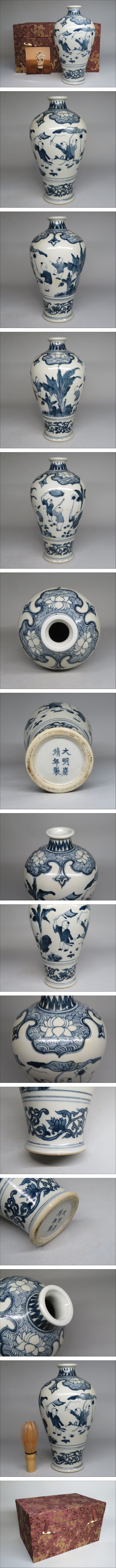 | 【東】明時代 「大明嘉靖年製」 青花唐子遊玩図梅瓶 中国美術/古美術・骨董品 | ||