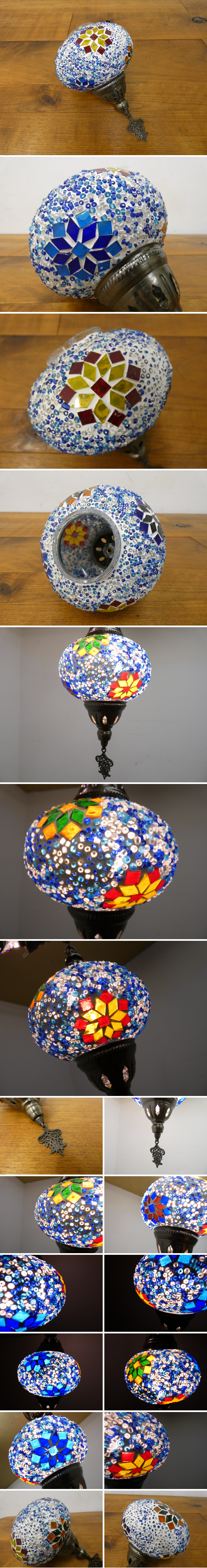 ◆RN227◆美品◆トルコランプ◆ハンドメイド◆モザイクガラス◆ペンダントライト◆シェードのみ◆照明◆直径16cm◆幾何学模様 吊り下げ照明 收藏