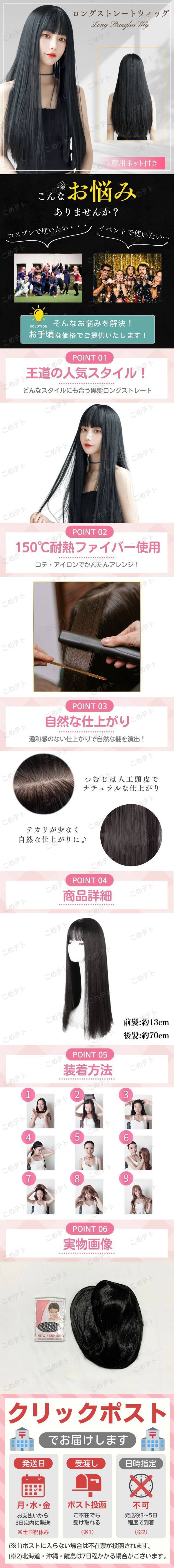 【商品説明】 ■様々な場面で使用して頂ける黒髪ロングなフルウィッグです。 ■テカリを抑え、生え際・毛先、太陽光に当たっても自然な仕上がりです。 つむじは人工頭皮で、自然な分け目♪ ■耐熱150度なのでドライヤー、コテ、アイロンに対応、いろんな髪型へアレンジできます。 ■コスプレ・イメチェン・ロリータ・パーティー・イベントでの女装、医療用としても活躍してくれます。 これからのハロウィンなどのイベントでもお使いいただけます。 ■専用ネット付きで、安心してご利用いただけます。 【商品詳細】 サイズ:約70cm カラー:ブラック 黒 素材:150度耐熱ファイバー セット内容:フルウイッグ 専用ネット ※ロングなので絡みやすいため、丁寧にお取り扱いください。 【発送について】 ◎クリックポストで発送します 発送日 :お支払い後1~3日以内 到着目安:発送後2~5日程度 ※商品はポストに投函されます ※遠方の方はもう少しかかる場合もございます ◎お願い ・専用/取り置き/には対応しておりません、そのまま購入をお願いします ・商品画像の転載や説明文のコピーはお止め下さい ※見つけたら通報しています ◎初期不良は対応しますので、何かあれば「評価前に」ご連絡下さい |
