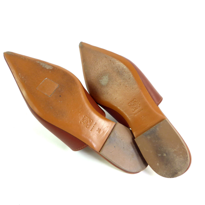 ロエベ (LOEWE) レザー ミュール サンダル ポインテッドトゥ #36 ブラウン 靴 シューズ(中古) 收藏