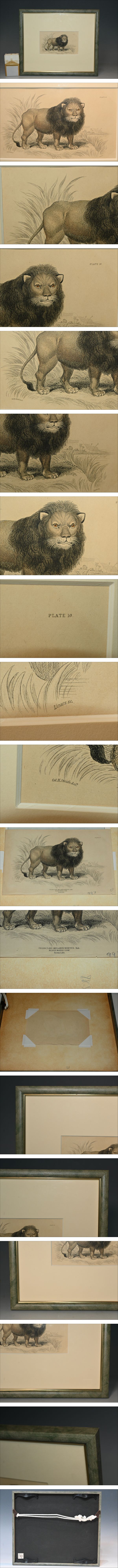 スコットランドの画家・彫刻家■ウィリアム・ホーム・リザーズ■ 銅版画 ライオン Lion 額装 LIZARDS 動物図鑑 歴史資料 洋書 古書 真作 | |||