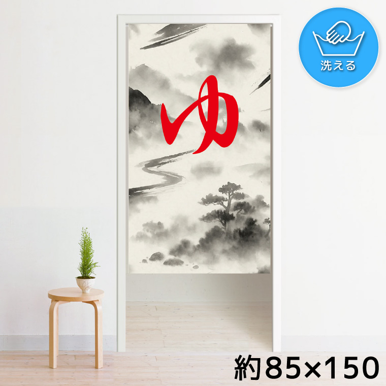のれん 150丈 洗える 目隠し 間仕切り 約85×150cm ミラーレース 転写プリント 温泉 風呂 入口 NOR-A205 水墨画 ゆのれん 150丈 レッド 收藏