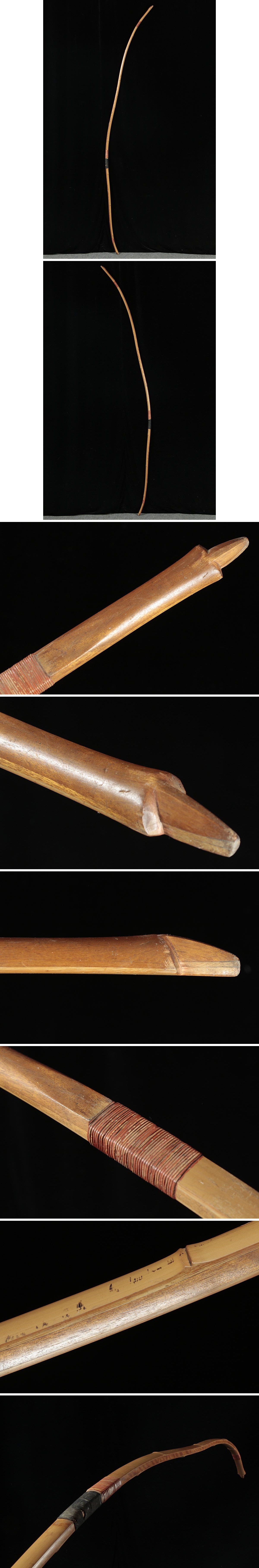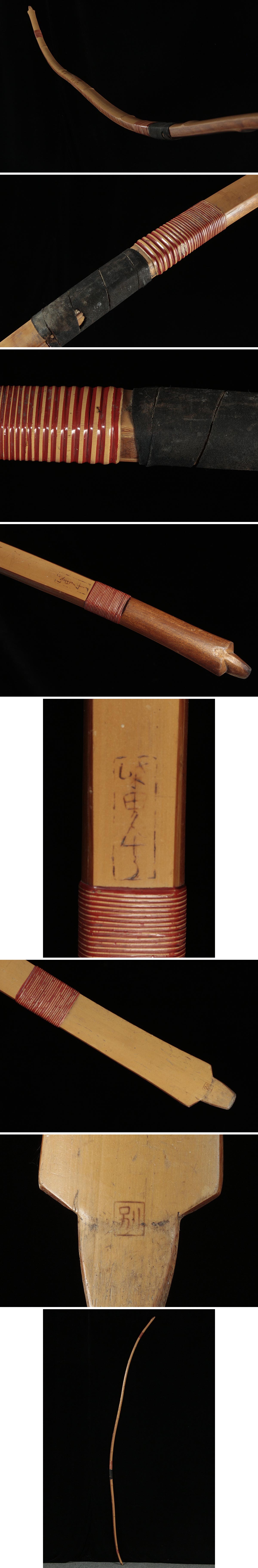 | ◆ 古弓具【柴田勘十郎 作/別】朱塗金彩籐巻 竹弓・和弓 全長219cm / 反り226cm 重680g・古弓 武具 弓道具 武具 古美術 ◆