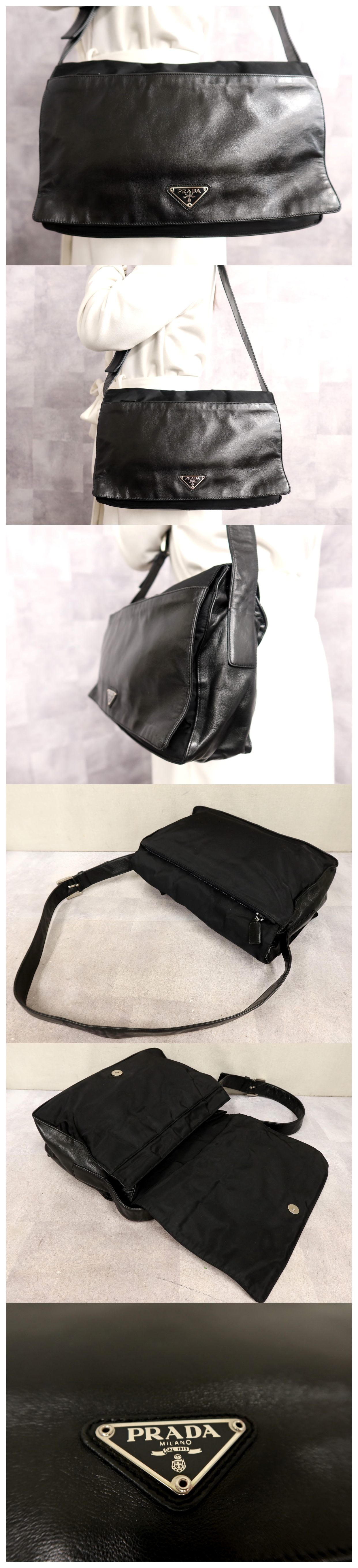 ●超美品●PRADA プラダ●三角ロゴプレート●ポコノ ナイロン ラム レザー●ワンショルダー バッグ●黒●SV金具●イタリア製●B5●Js64860 收藏