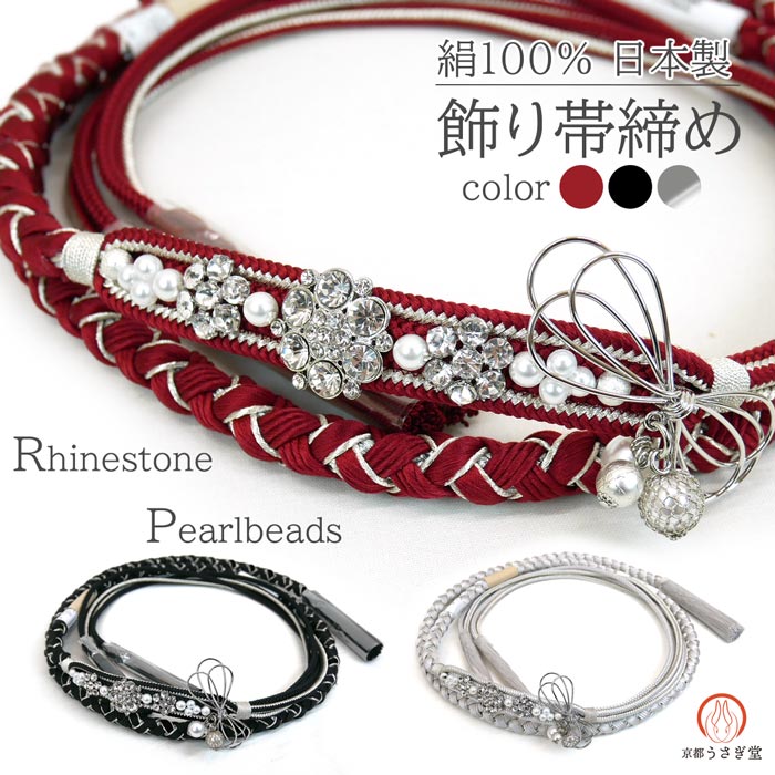 帯締め 飾り帯締め 絹100% 成人式 振袖 oj-110 お洒落きもの 帯締 帯じめ 帯〆 パールビーズ ラインストーン 結婚式 卒業式 收藏